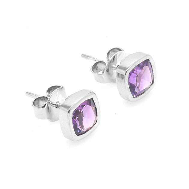 These amethyst studs in silver strike the perfect balance between bold color and classic form. Made from 925 sterling silver, they feature a polished finish that enhances the deep tone of the stones. Their simple structure keeps the focus on the gemstones, allowing their brilliance to take center stage. As a result, they offer statement-making elegance with everyday comfort.