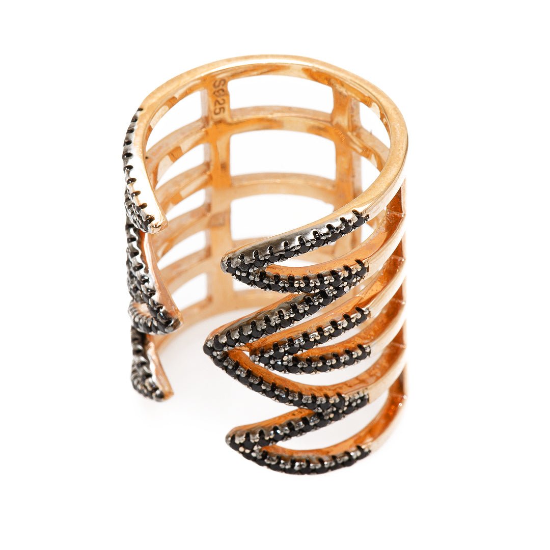 Each black crystal is set meticulously along the band’s top edge. The faceted stones reflect subtle flashes of light from every angle. Furthermore, their deep tones contrast strikingly against the silver. This interplay adds drama without excess. Consequently, the ring balances shine and shadow beautifully. The result is a refined edge to any look. It celebrates both clarity and boldness through careful design.