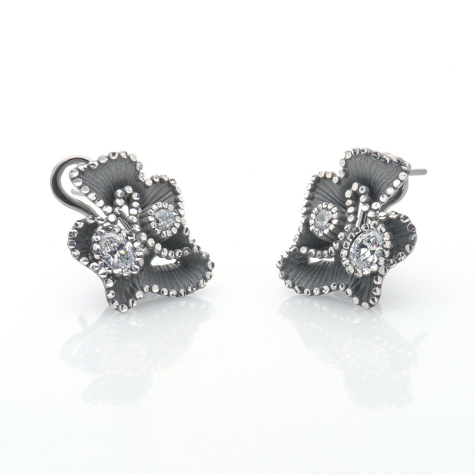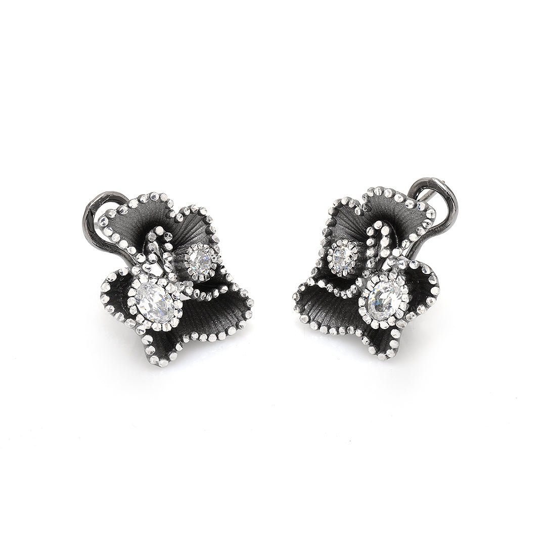 These black flower earrings fuse sculptural design with bold color. Crafted in 925 sterling silver, each earring unfolds into layered petals. Moreover, the dark finish adds depth and drama. As a result, they elevate both casual and evening looks. You’ll find them versatile and distinct.