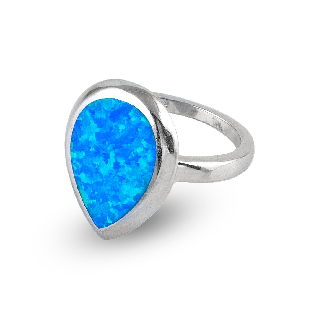 This blue drop silver ring captures the serene elegance of water in a wearable design. Made from 925 sterling silver, it weighs 4.49 grams. At its center rests a smooth blue drop, softly rounded and delicately set. This gentle focal point draws the eye without overpowering the finger. The polished silver reflects light with a quiet shimmer, while the shape of the drop adds natural grace. Altogether, the blue drop silver ring offers simplicity, balance, and beauty.