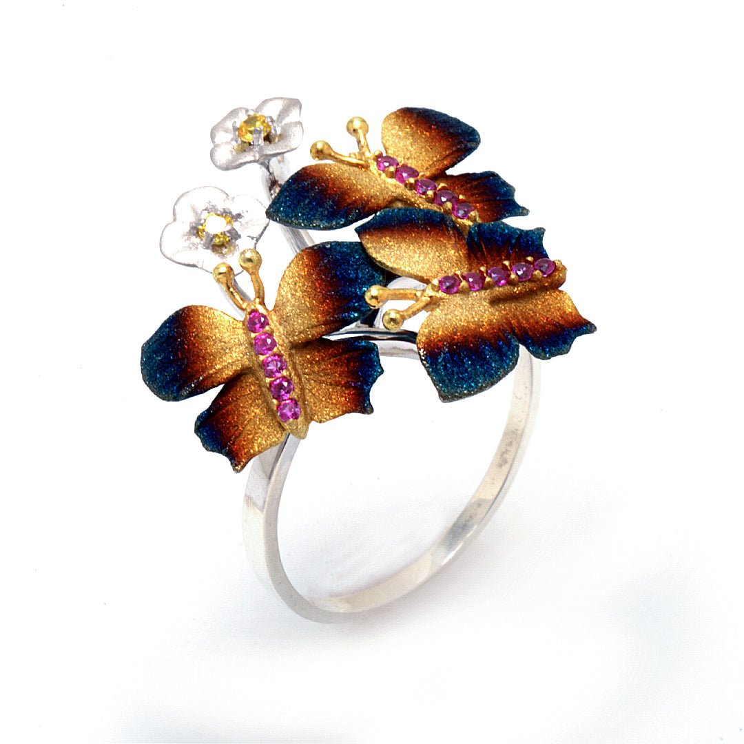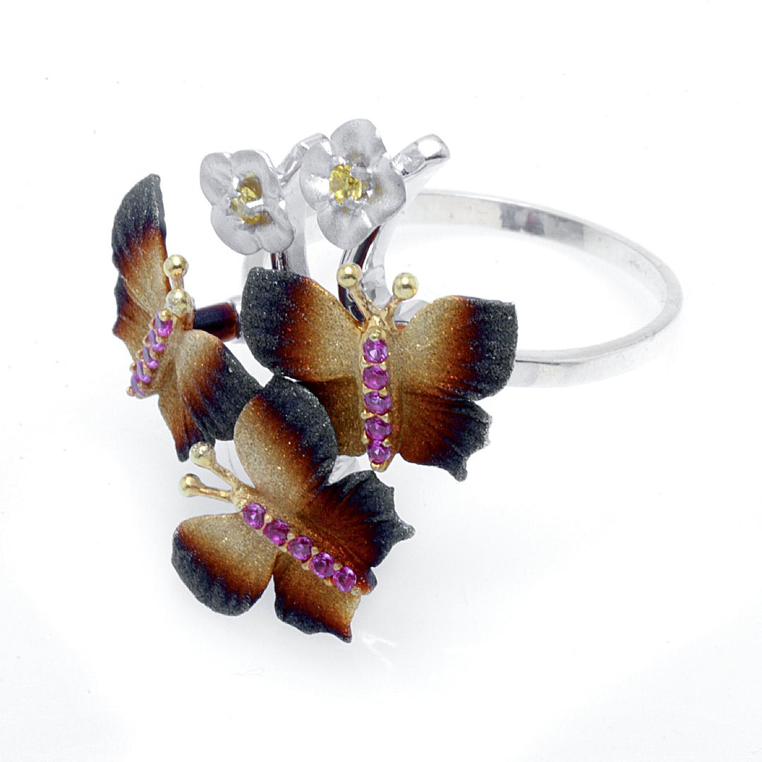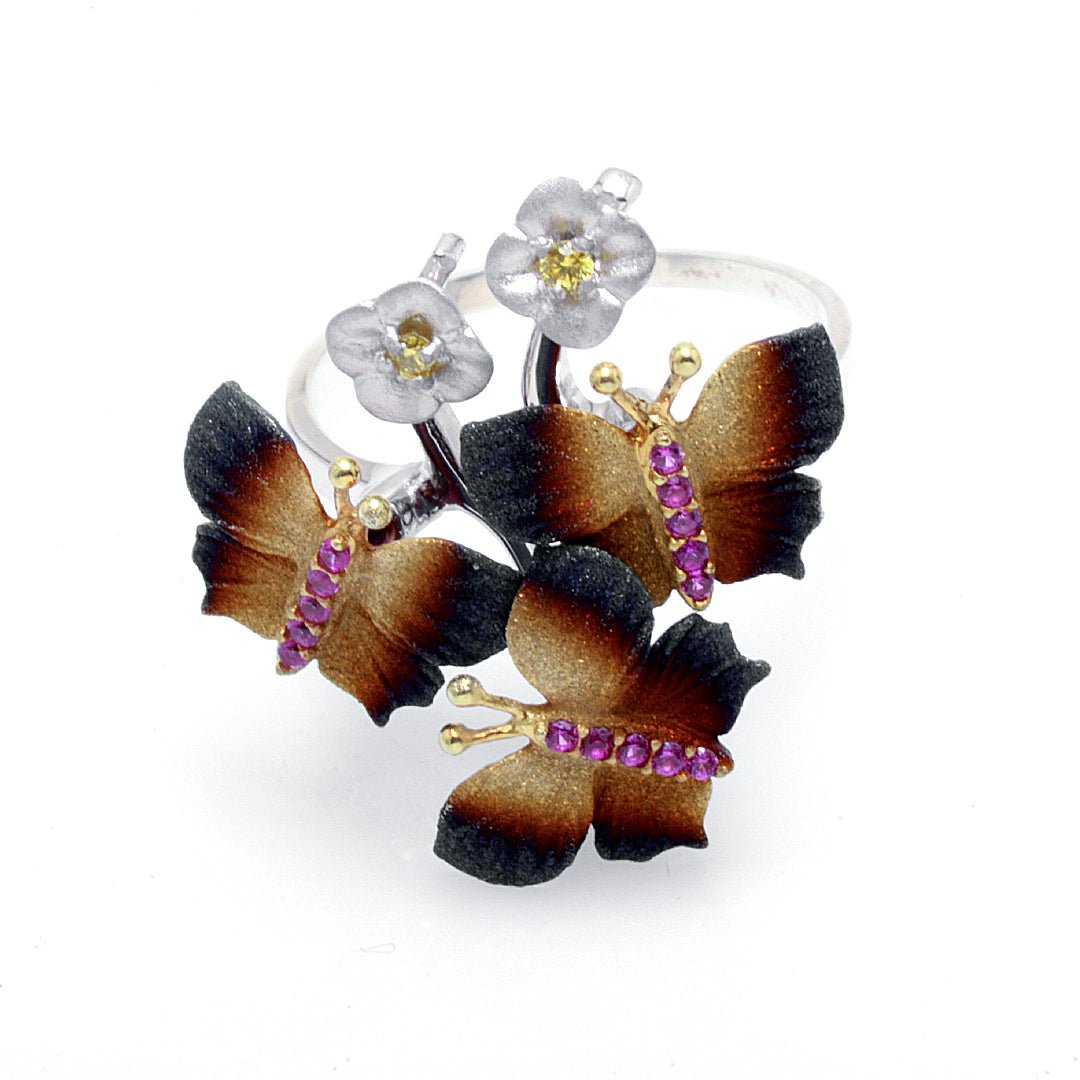 This brown butterfly silver ring captures nature’s stillness and movement in one elegant form. Designed by Roberto Bravo and crafted from 925 sterling silver, it features three butterflies perched in formation. Their wings are coated in natural-like brown enamel, adding warmth and life to the piece.