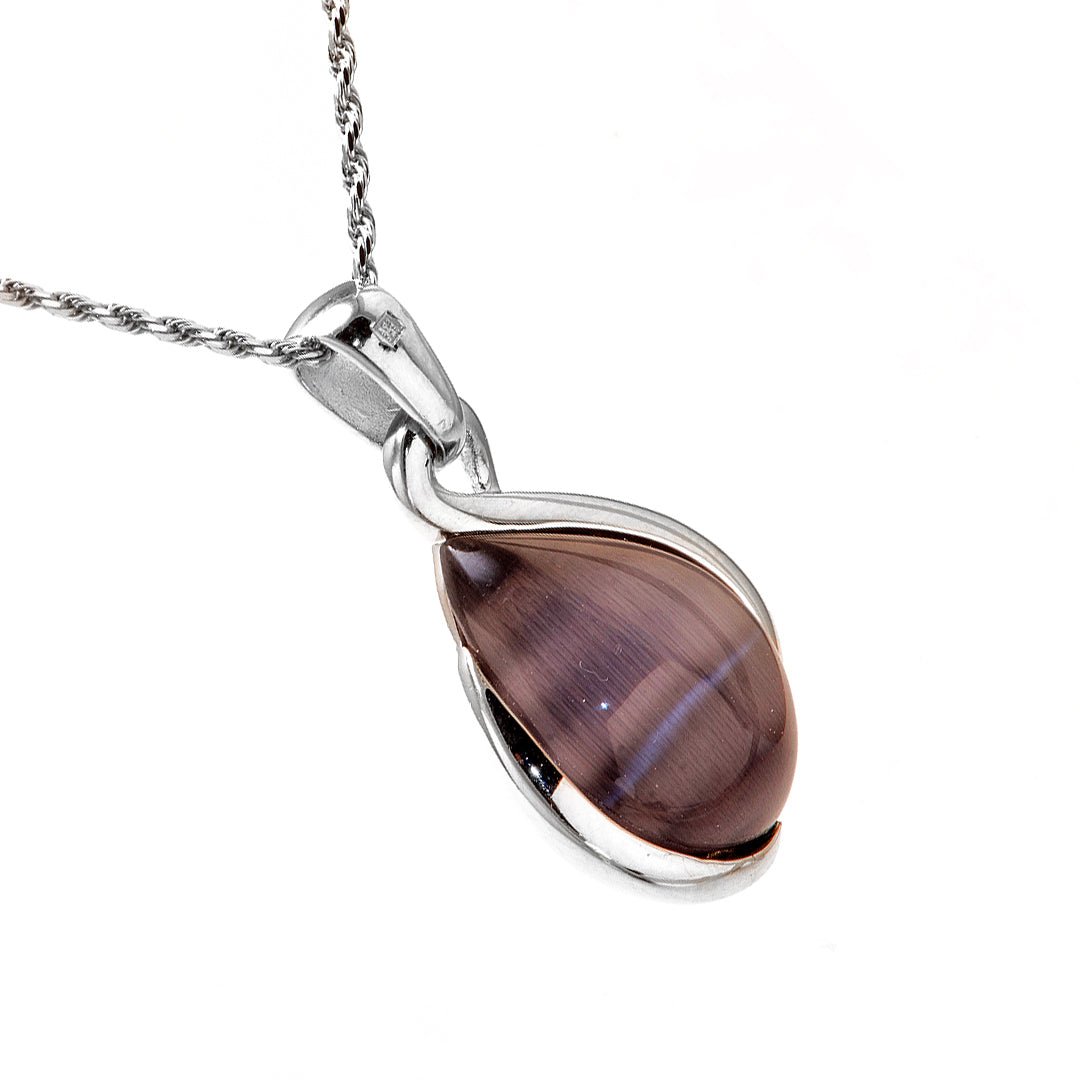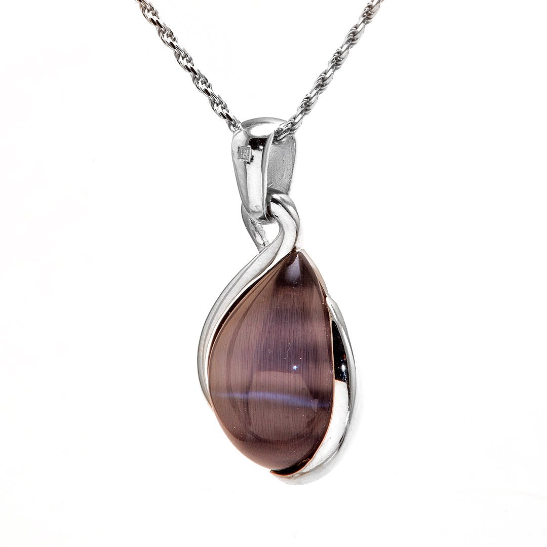 The brown cat’s eye stone displays a unique glow that seems to move across its surface. This visual effect—called chatoyancy—adds dimension and character to the stone. Set against bright sterling silver, the warm brown hue offers a beautiful contrast. The polished setting holds the stone securely and reflects light, giving the entire piece a luminous finish. The combination of earthy tones and refined silver makes this necklace ideal for both daytime and evening wear.