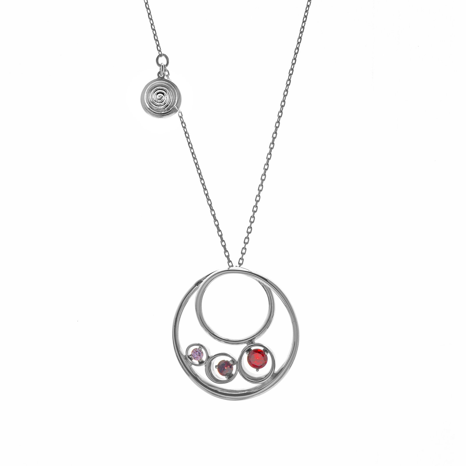 This circles with stones silver necklace blends graceful movement and subtle sparkle into a harmonious design. Crafted in 925 sterling silver and weighing 12.06 grams, it features a series of polished open circles linked in sequence. Each circle holds a petite stone that catches the light. The result feels refined yet dynamic, offering both structure and flow. As a circles with stones silver necklace, it adds a touch of effortless elegance that works perfectly from morning meetings to evening gatherings.