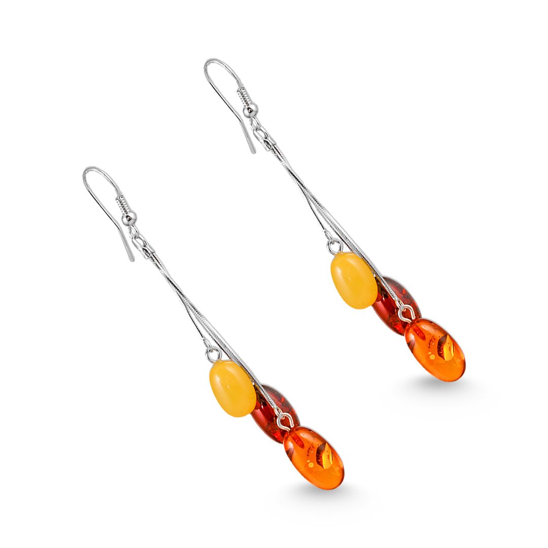 The earrings are designed to move with you, reflecting light from each polished surface. The colorful drops add energy and variety, enhancing the silver with a playful edge. Moreover, the layout of the stones adds depth and flow without being overwhelming. The polished silver frames them delicately, ensuring every hue stands out. This combination of color and movement makes the design both modern and expressive.