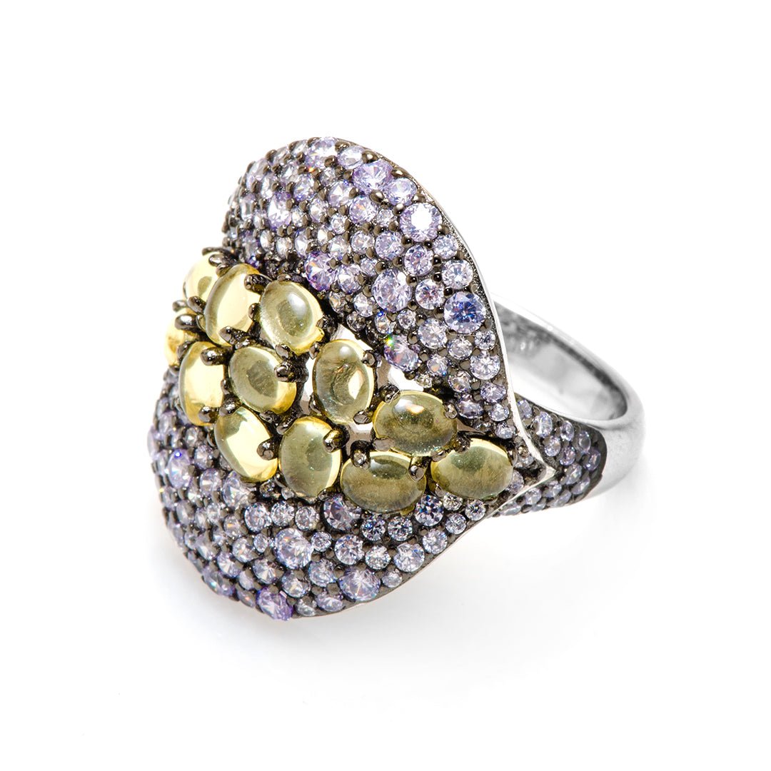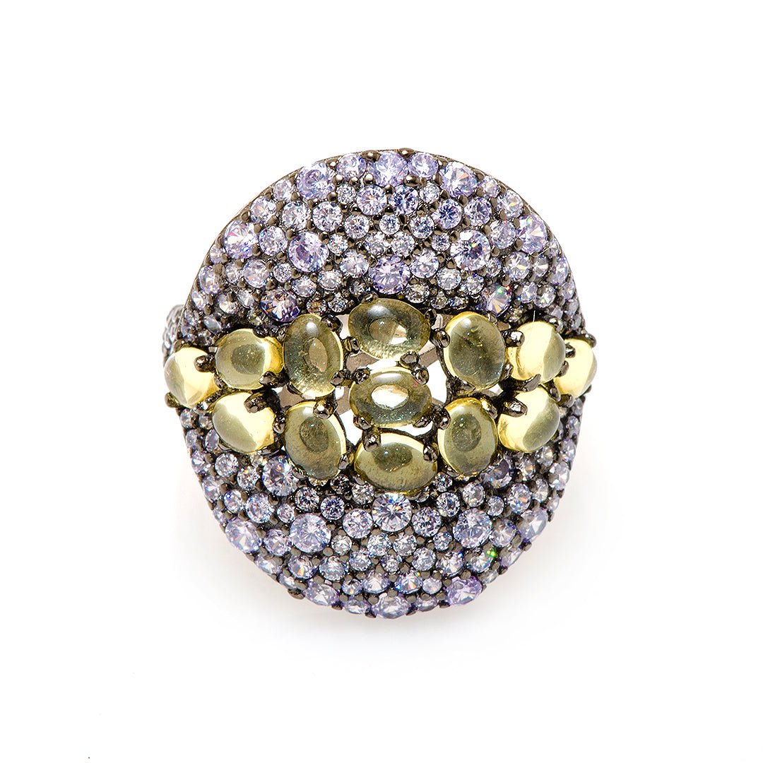 Each stone has been selected for its vibrance and carefully placed for balance and symmetry. Their man-made nature ensures color consistency and long-term brilliance. Additionally, the polished silver frame reflects light from every angle, enhancing the stones’ glow. The contrast between cool silver and bold color gives the ring its unique character. As a result, the piece becomes both an accessory and a small work of wearable art. The lively palette adds personality while still remaining versatile enough for everyday styling.