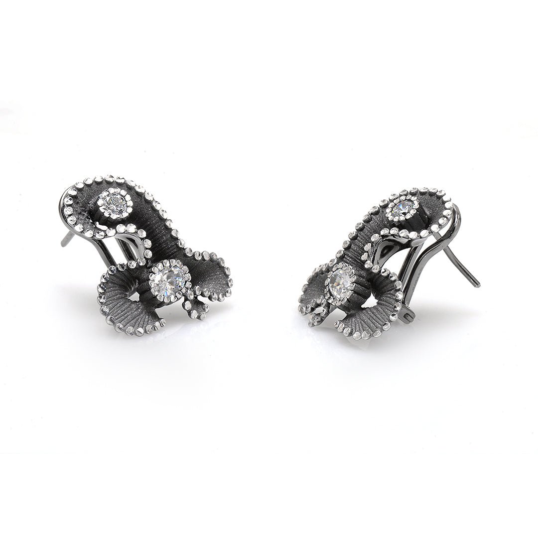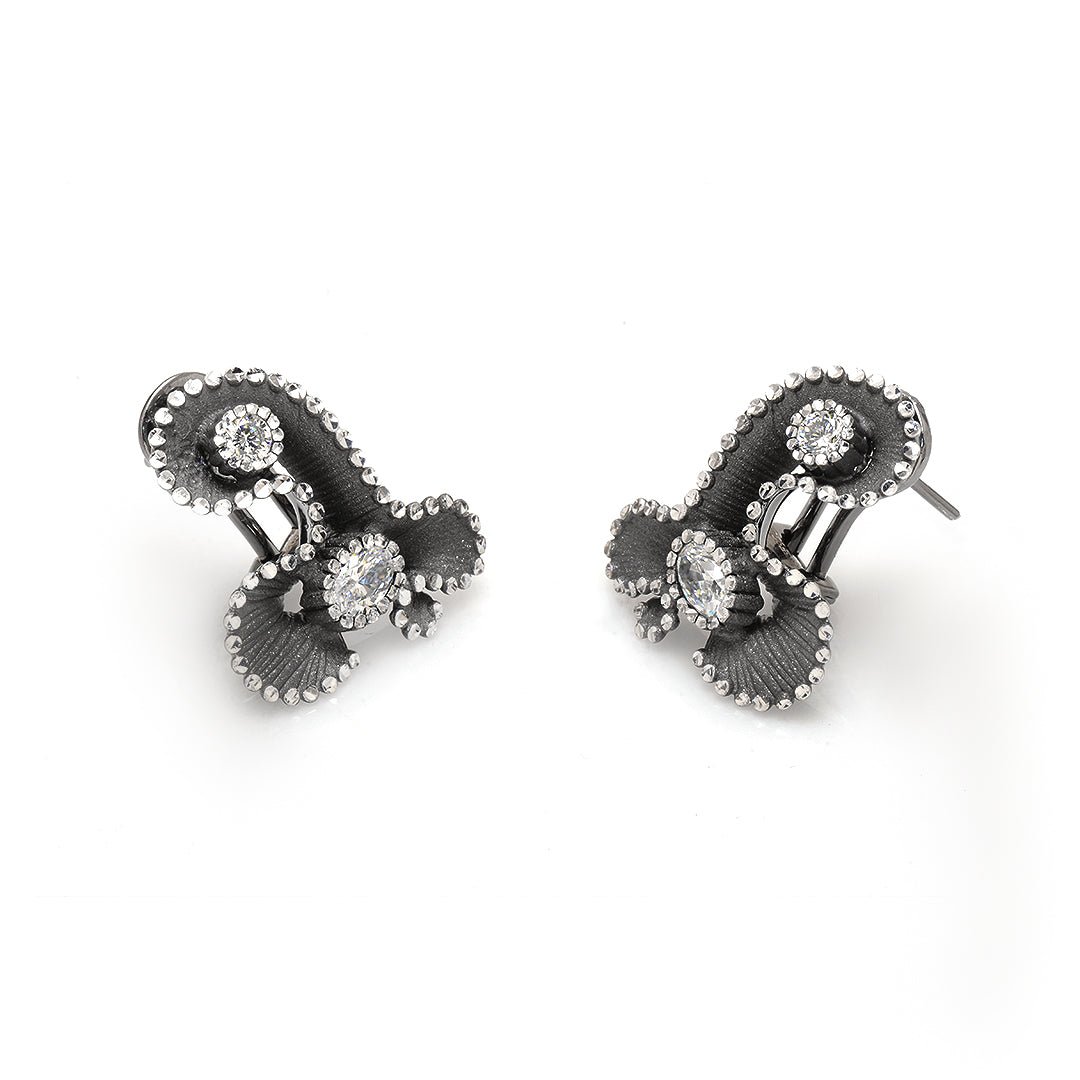 These crystal flower earrings from Roberto Bravo offer a refined take on floral beauty. Made from 925 sterling silver, each earring showcases a sculpted flower form adorned with crystal accents. The result is a design full of movement, texture, and light.