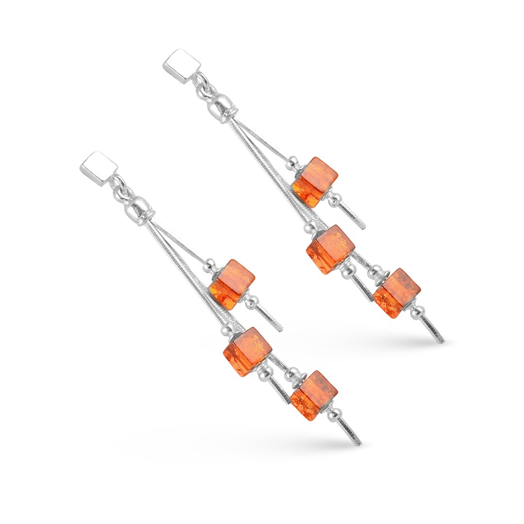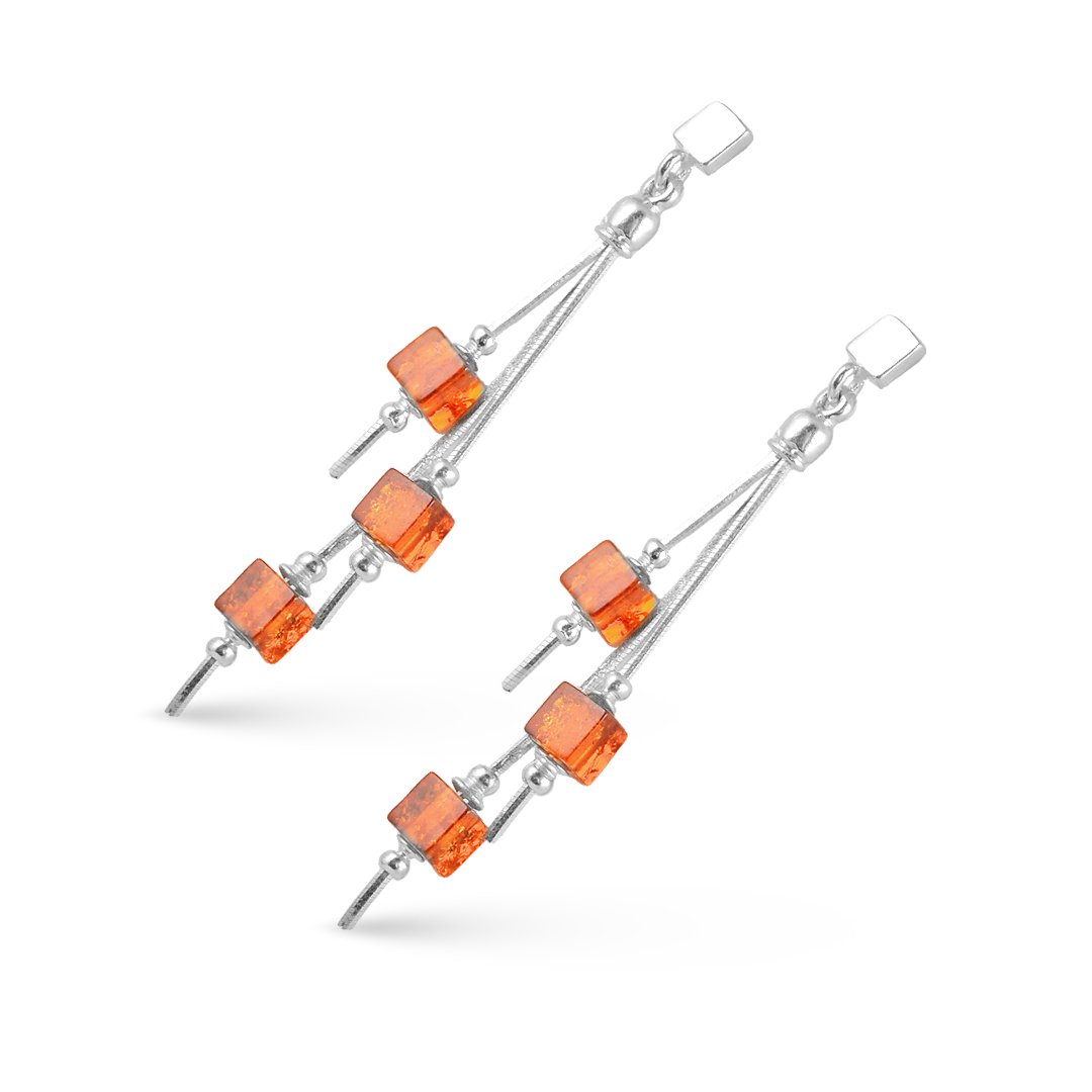 These dangling amber cubes silver earrings present a modern interpretation of classic elegance. Crafted in 925 sterling silver, the design highlights clean geometry. Each earring features cube-shaped synthetic amber stones. Their warm tones create contrast against the cool silver finish. As a result, the earrings feel balanced and visually engaging. The geometric form adds structure, while the amber introduces softness.