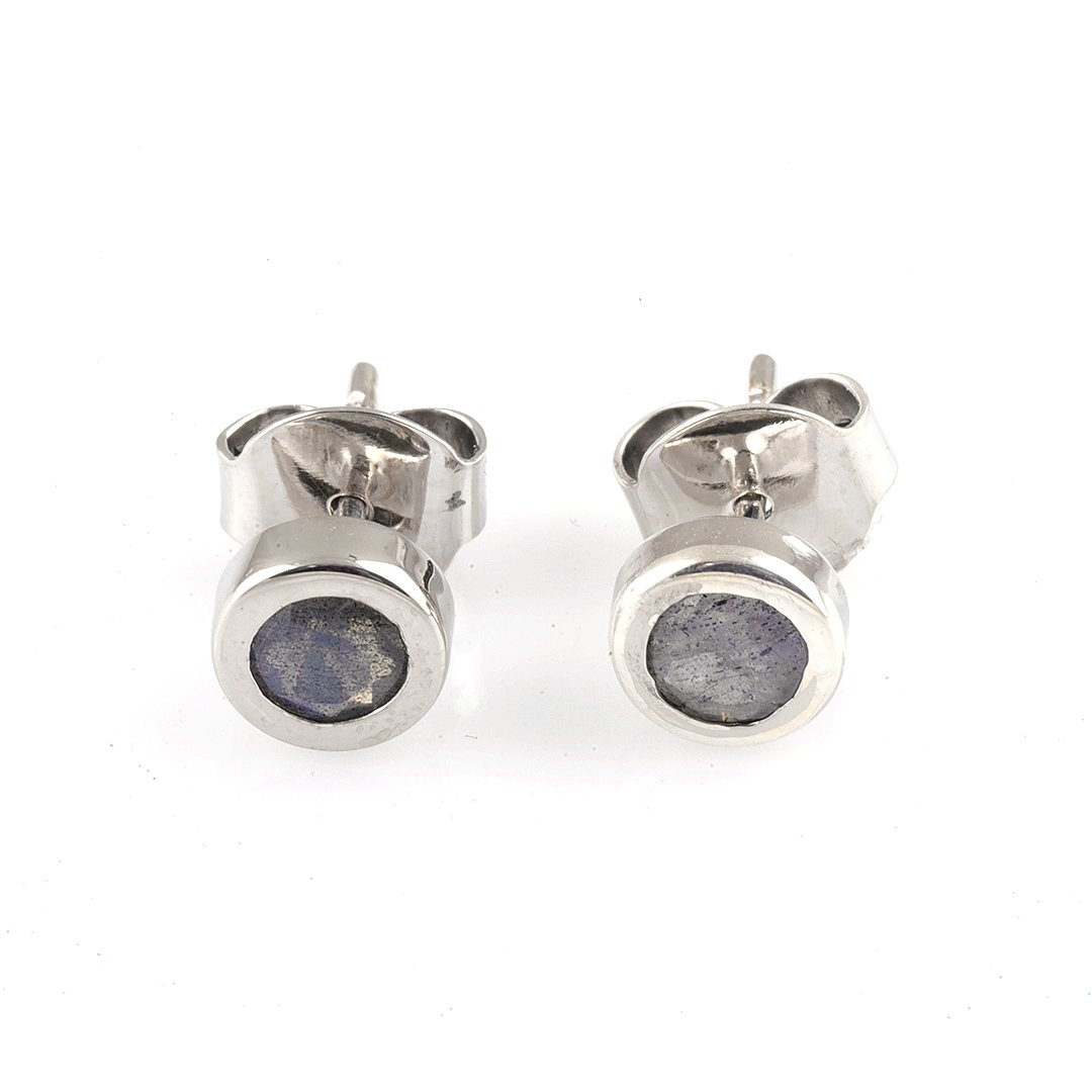 Labradorite is prized for its labradorescence—an inner glow that shifts with every angle. In these earrings, each stone is polished to highlight that effect. The slim silver bezels allow maximum surface exposure. As a result, the studs capture and reflect natural light beautifully. Additionally, the cool silver tones complement the stones’ varied hues. These delicate labradorite studs create a quiet, luminous accent for any look.
