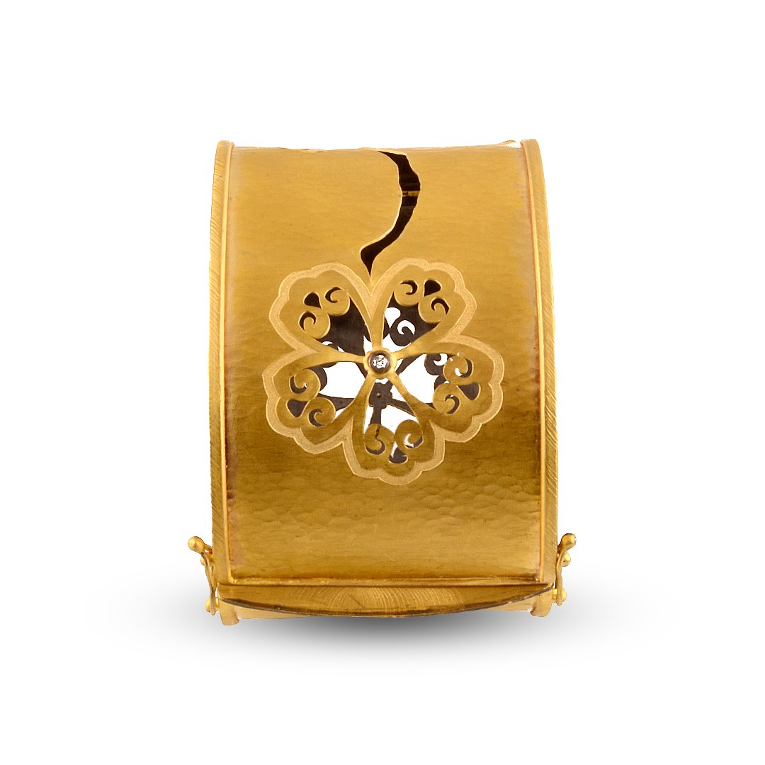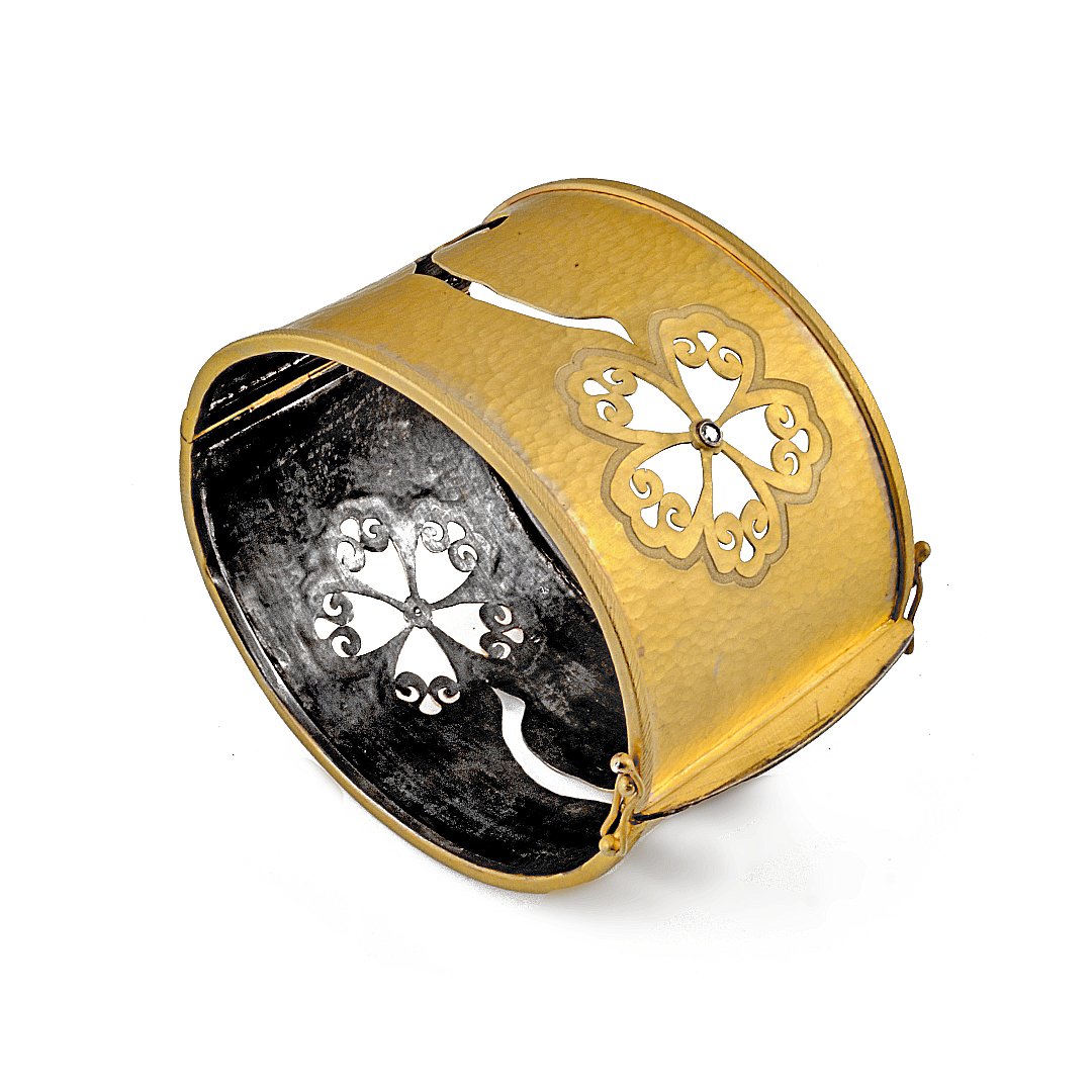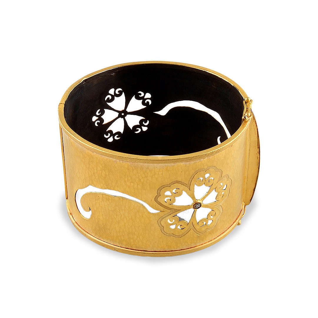 Weighing 40.93 grams, this bracelet offers a substantial feel without bulk. The precise gold fusion accentuates each curve with purpose. Additionally, the polished silver surface reflects light dynamically. Precision hinges and secure clasps ensure comfortable, confident wear. Moreover, artisans employ meticulous polishing to refine every contour. Therefore, this piece balances durability with delicate artistry. It honors both robust quality and delicate detailing at once. Consequently, wearers enjoy a lasting expression of luxury. Moreover, every detail reflects generations of silversmithing expertise.