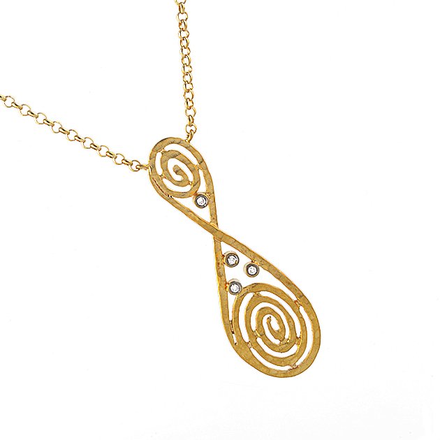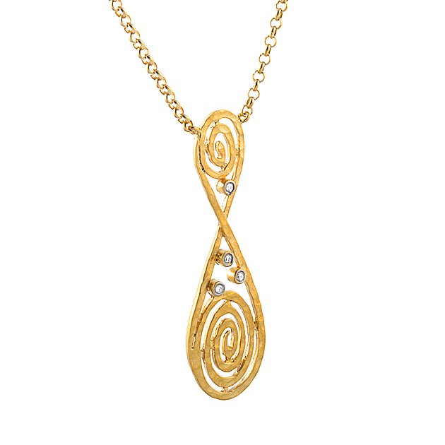Four round brilliant diamonds totaling 0.06 cts punctuate this design with refined sparkle. Each stone is graded VS2 clarity and H color for consistent brilliance. They are set in polished gold bezels that accentuate each facet. Moreover, their rhythmic placement echoes the design’s flowing contours. These diamonds add discreet shimmer with every movement. As a result, they elevate the piece without overwhelming the design. Furthermore, their sparkle reflects masterful craftsmanship and intentional artistry in each detail.
