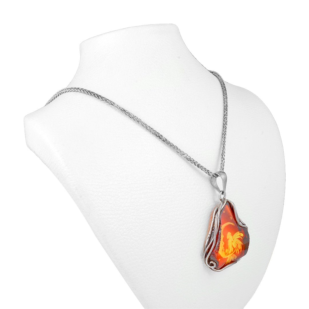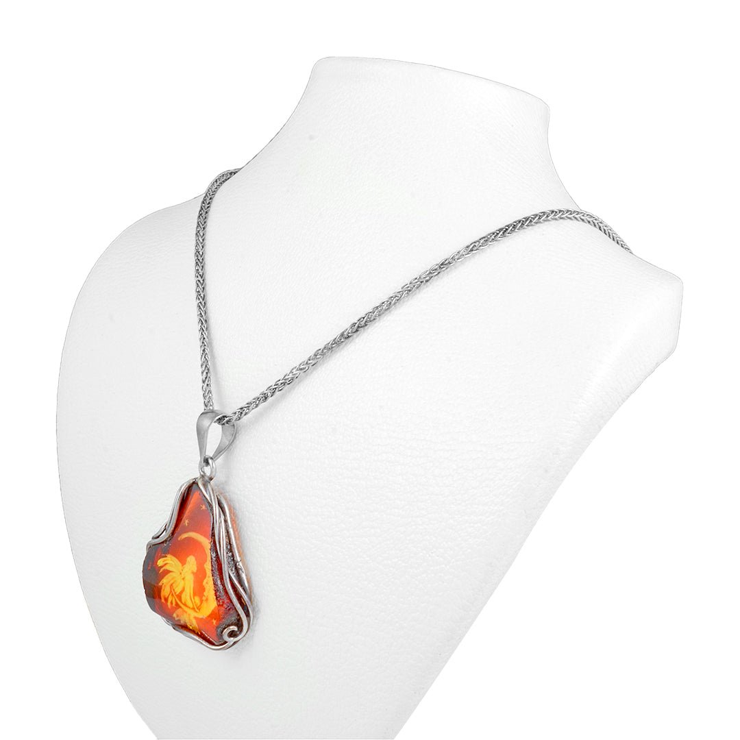 Though intricate in design, the necklace is crafted to wear with ease. The silver frame offers both structure and flow, balancing weight and movement for comfort. The red stone provides a glowing focal point, while the moon and fairy add artistic detail without overwhelming the composition. This makes it a standout piece that also feels natural around the neck.