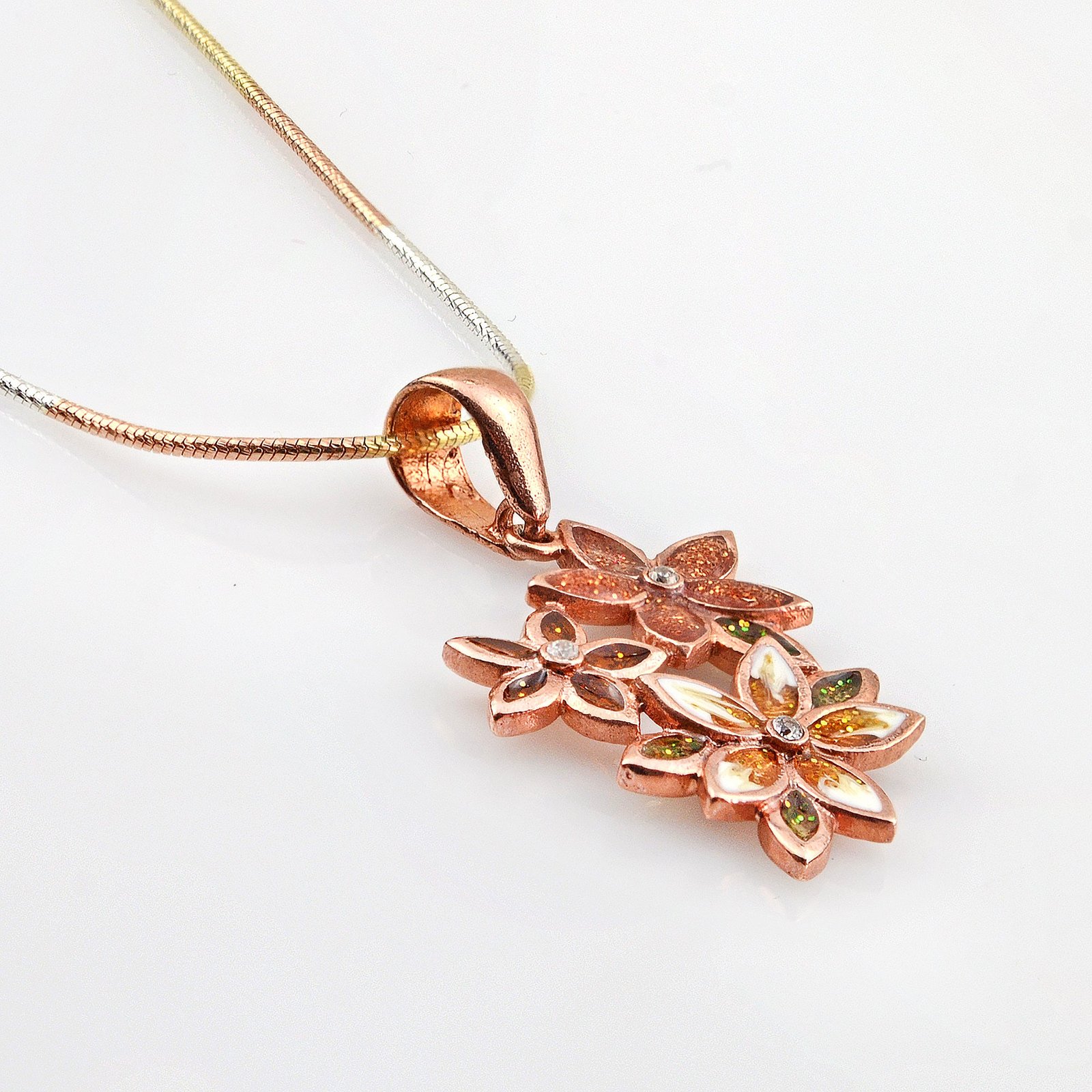 This floral silver pendant brings delicate beauty to a refined silhouette. Made from 925 sterling silver and finished in rose gold color, the piece features a gentle flower motif with open petals and graceful lines. It’s a feminine design that carries natural charm and balance.