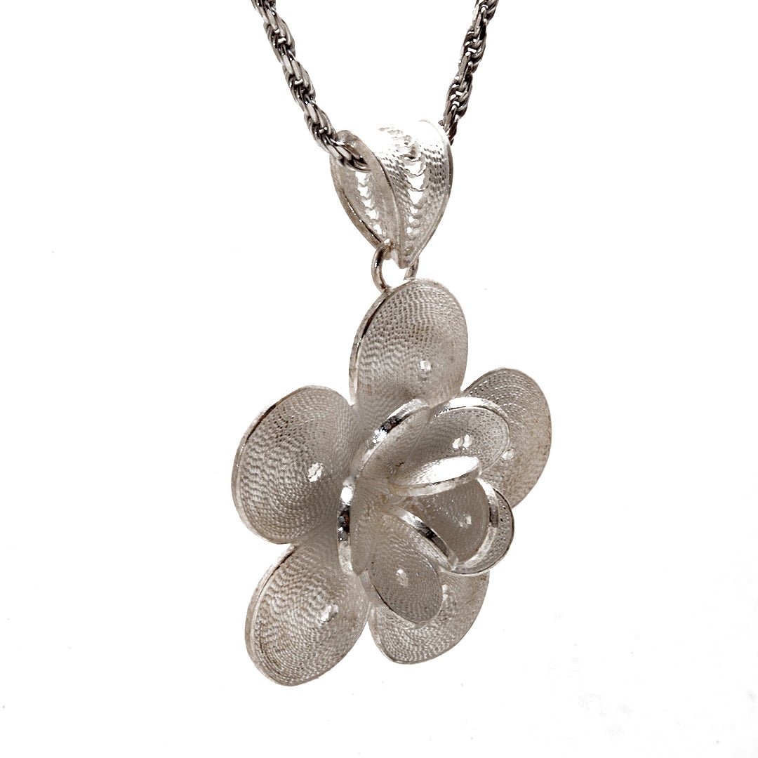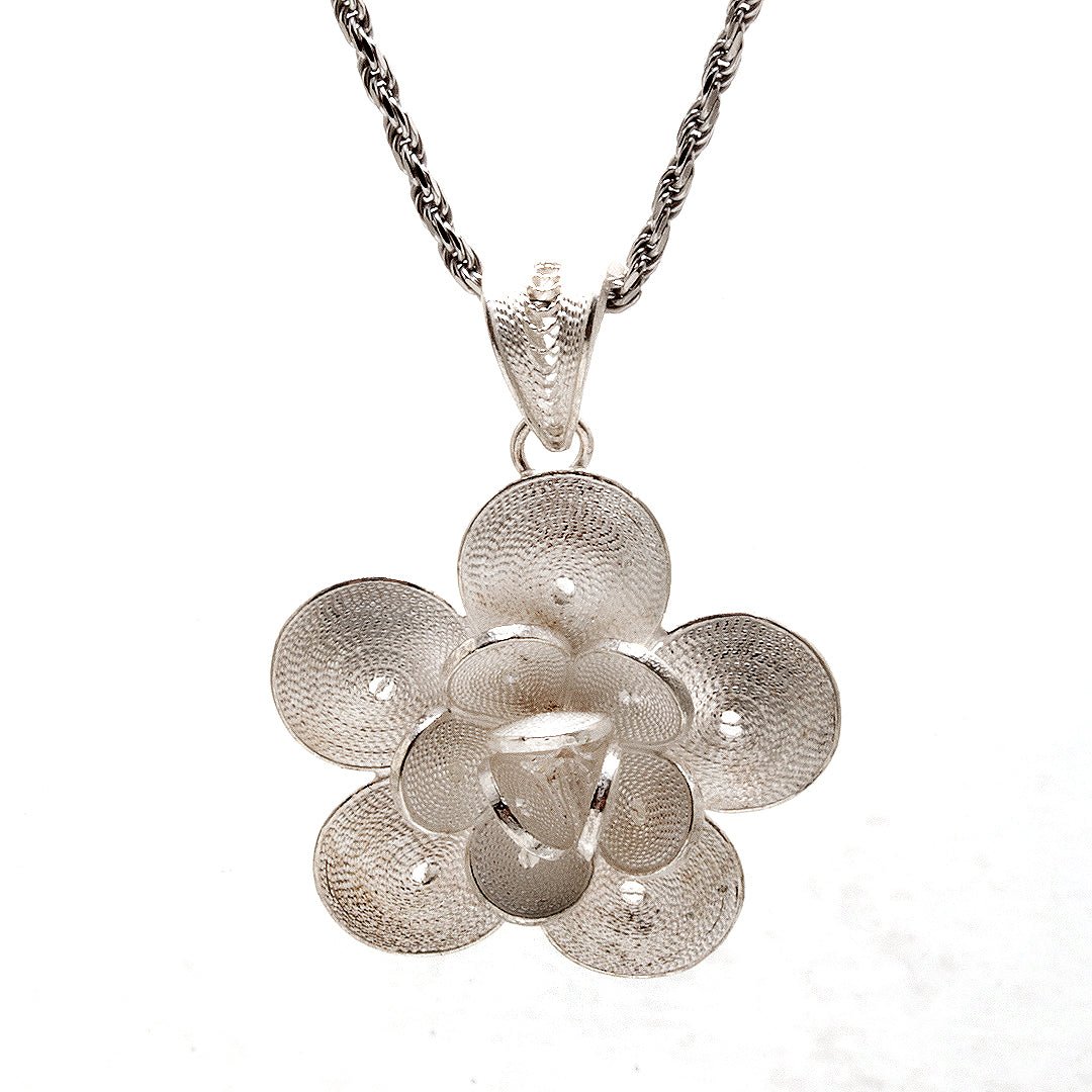 This flower silver pendant is a graceful expression of craftsmanship. With its clean curves, lightweight build, and radiant polish, it’s a piece that adds a delicate yet confident touch to any collection.