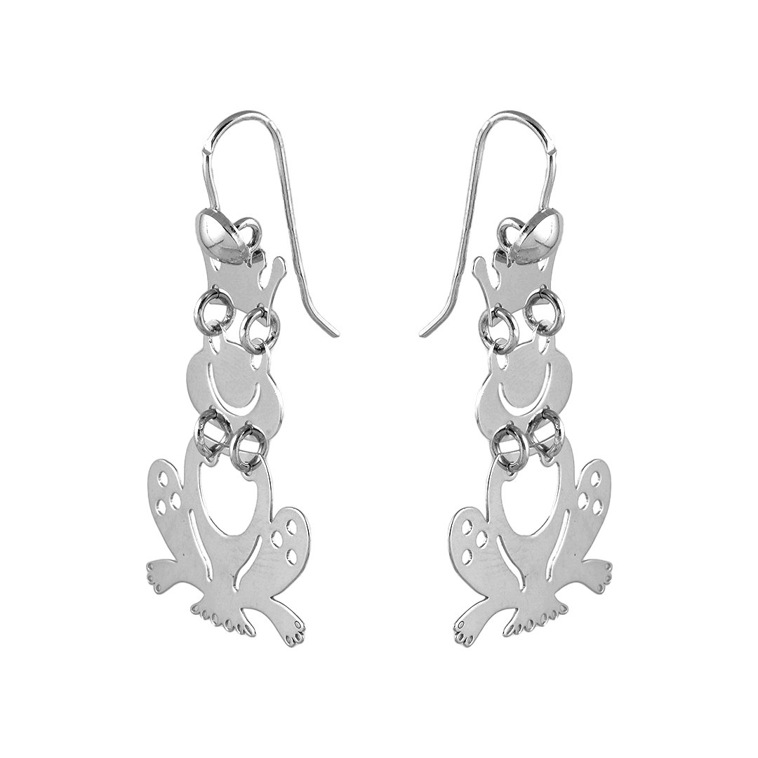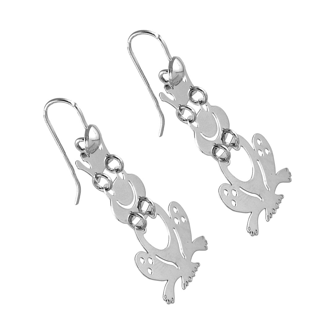 These frog-shaped silver earrings bring a playful spirit to your jewelry collection. Crafted from 925 sterling silver and weighing 4.15 grams, each earring is carefully formed into a graceful frog silhouette. Their detailed shape adds personality while remaining refined. The frog shaped silver earrings are perfect for anyone who enjoys lighthearted, creative design with a polished finish.