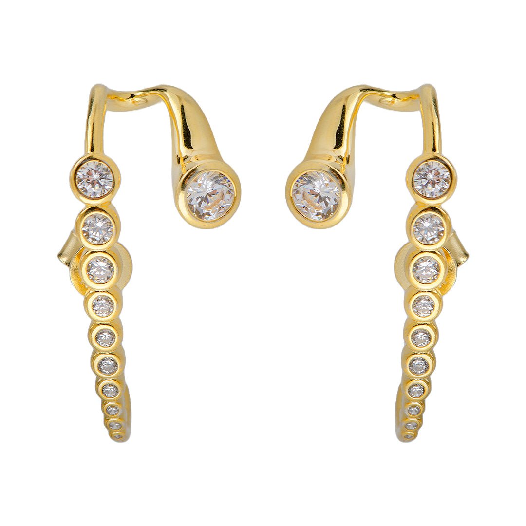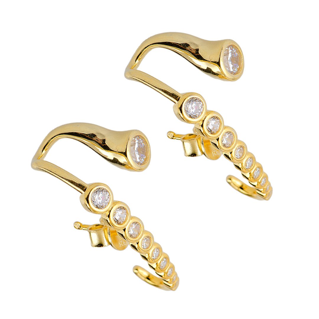 These gold silver earrings with crystals reflect a modern sense of opulence. The 925 sterling silver base is plated in radiant gold, offering warmth and depth. Crystals are set into the design to catch and reflect light at every angle. Their precise placement ensures a soft sparkle that feels refined rather than overpowering. Together, the golden finish and the shimmering stones create a look of graceful confidence.