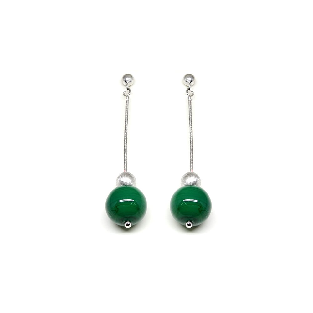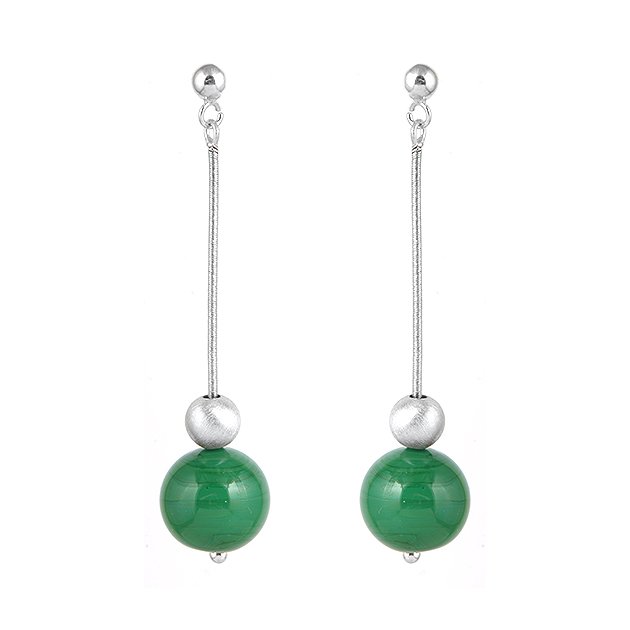 The earrings feel light and smooth on the ears. The silver base curves gracefully, holding the green ball in perfect balance. As you move, the ball catches light and reflects a soft glimmer. The closure is secure and easy to fasten, allowing you to wear them all day without worry. Every detail is crafted to ensure a natural, effortless feel.