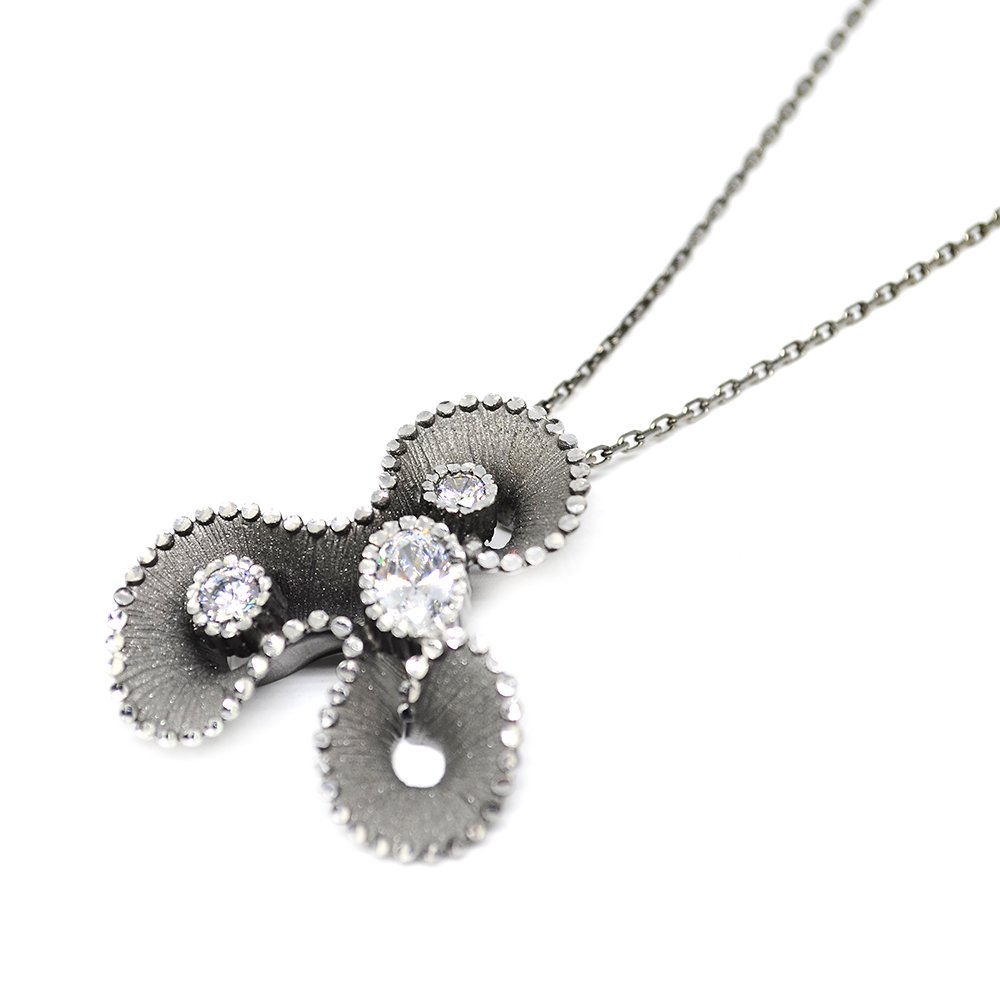 This grey flower silver necklace by Roberto Bravo speaks with delicate confidence. Made from 925 sterling silver and weighing 9.47 grams, it showcases a softly sculpted flower motif in rich grey tones. The petals curve gently, forming a graceful silhouette that sits beautifully on the collarbone. As a grey flower silver necklace by Roberto Bravo, it balances bold form and subtle color in a way that feels fresh yet enduring.