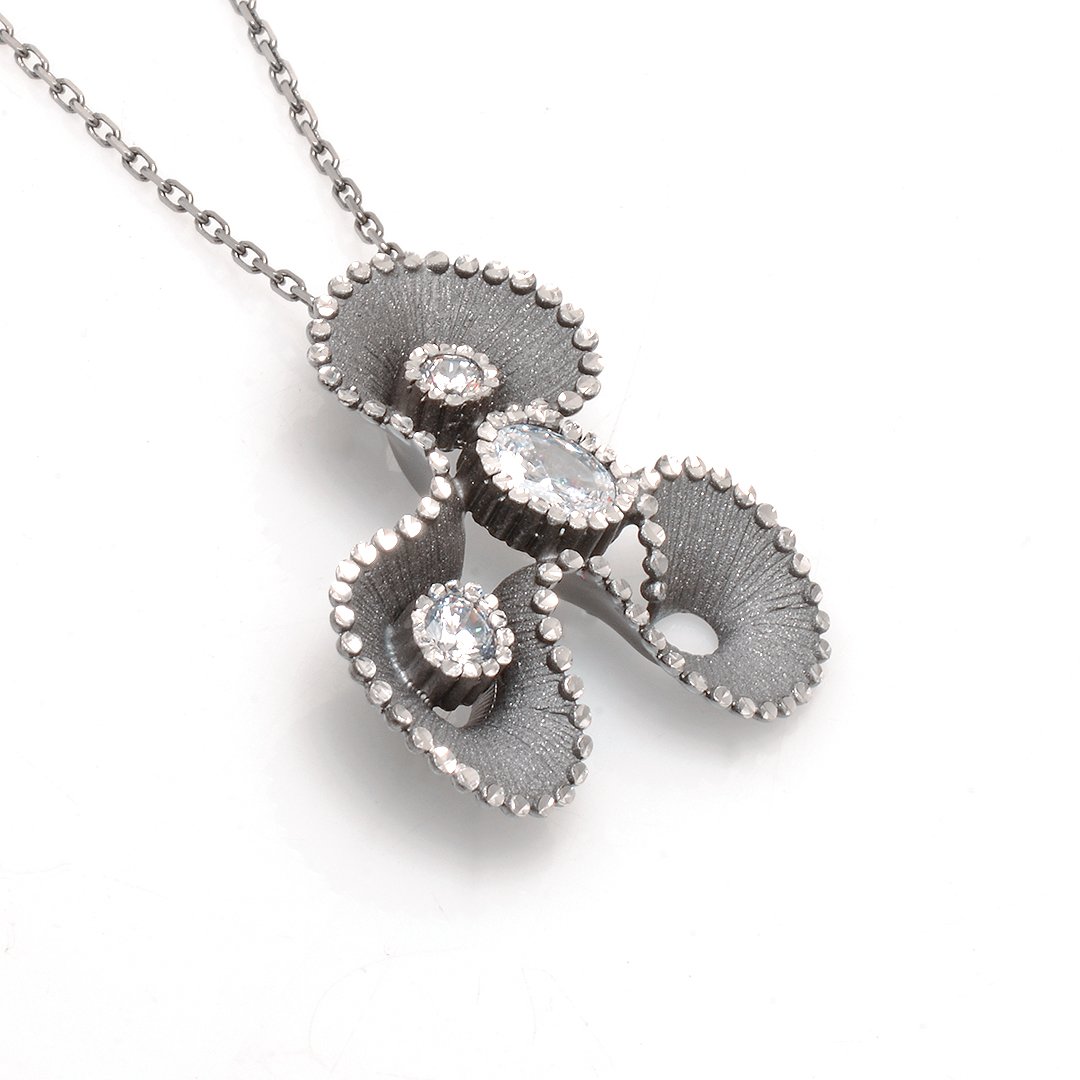This grey flower silver necklace offers a soft statement with sculptural charm. Made from 925 sterling silver and weighing 9.55 grams, it features a graceful floral design in refined grey tones. Gently layered petals form a centered motif that sits delicately at the base of the neck. This grey flower silver necklace is a perfect blend of softness and structure—ideal for those drawn to subtle beauty.