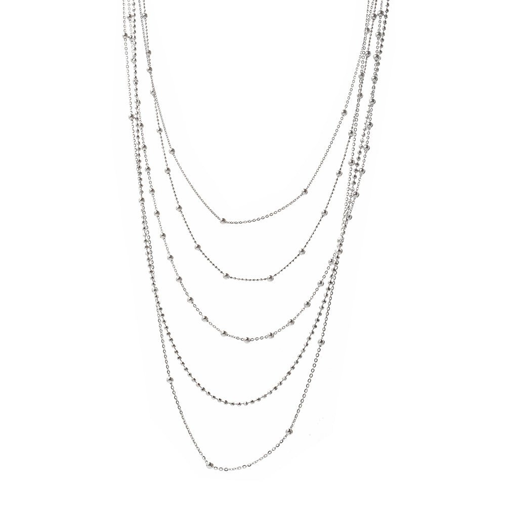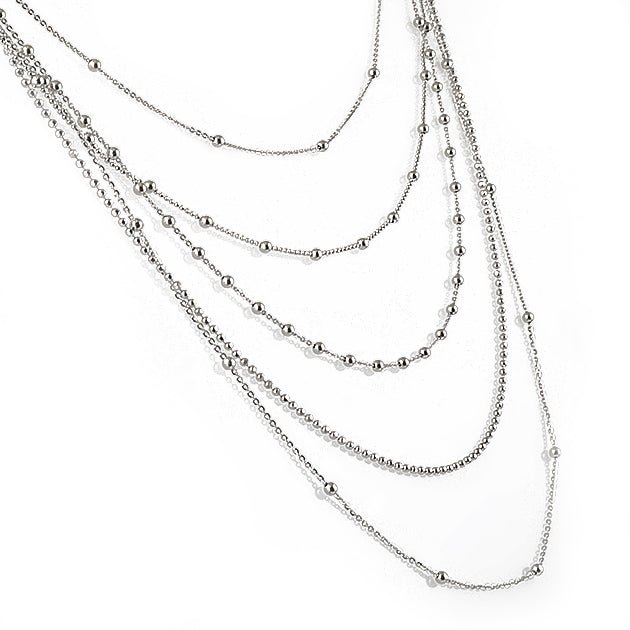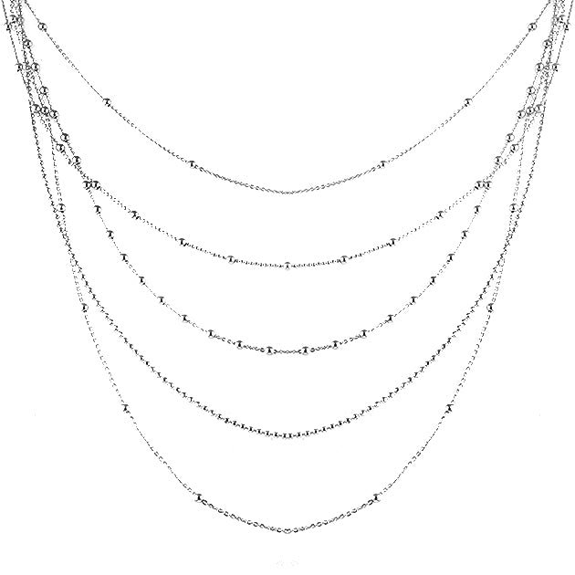 Each layer is crafted to lie flat, creating a cascading effect that feels fluid and architectural. The chains vary subtly in length, giving dimension while maintaining harmony. The high-polish finish catches and reflects light, adding brightness without excess. Though bold, the overall structure feels balanced and clean. This attention to proportion ensures the piece enhances your look without overwhelming it.