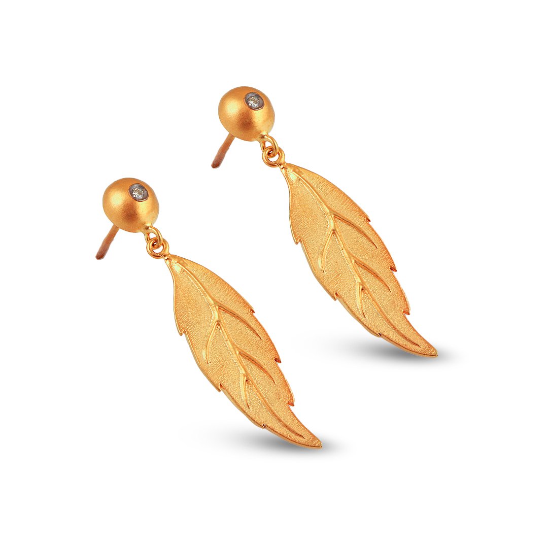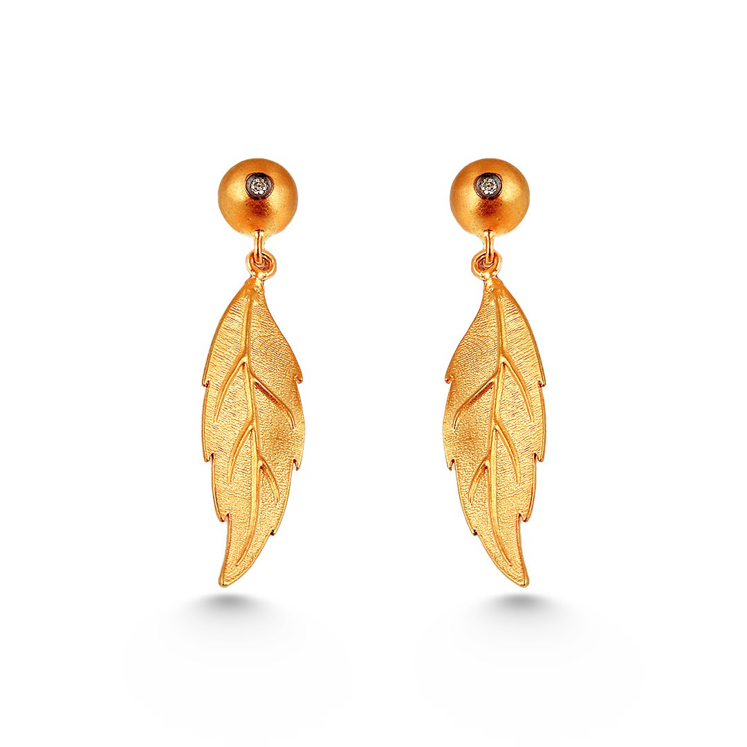 Two round brilliant diamonds total 0.02 cts in this design. Each stone is graded VS clarity and H color for consistent brilliance. They are set in polished gold bezels that define each facet. Moreover, these gems glimmer like dew-kissed leaves at dawn. Their modest size offers delicate sparkle without overpowering shape. Consequently, the diamonds accentuate the botanical motif with refined elegance. This arrangement creates a harmonious balance between metal and gem.