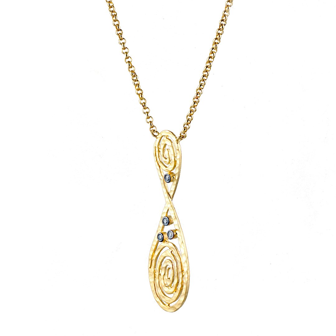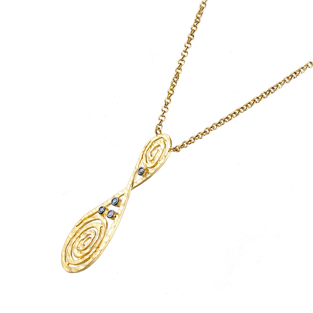This minimalist silver and gold diamond necklace embraces clean lines and subtle sparkle. It is crafted in sterling silver fused with 0.35 g of 24 kt yellow gold. Moreover, the dual metals create a gentle contrast across each polished segment. The four VS2-H diamonds total 0.05 cts, each set to gleam discreetly. Furthermore, the design invites everyday elegance without artifice. The minimalist silver and gold diamond necklace balances refined style and effortless wear. Consequently, it offers a versatile accent for any neckline.