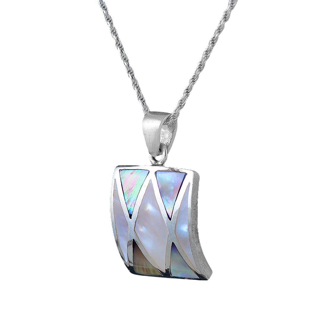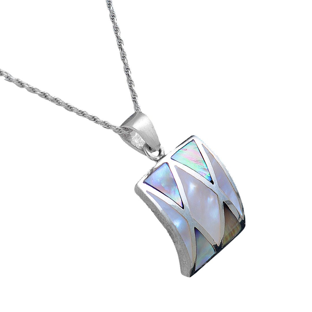 The pendant’s shape adds modern flair. Its clean, square lines bring structure to the softness of the shell. The multicolored inlays are carefully placed, allowing each hue to complement the next. As light moves across the surface, the shell glows gently. This design celebrates both craftsmanship and nature. The simplicity of the structure allows the texture and tone of the inlay to take the spotlight. It’s a subtle but striking statement.