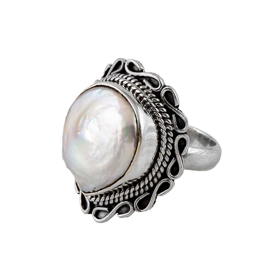 Mother of pearl glows with a soft, opalescent light. Its surface plays gently with the surrounding silver, adding subtle depth. The silver setting flows around it in a sculpted, seamless form. Each element enhances the next, creating harmony in shape and tone. The ring is fluid in style but grounded in craftsmanship. This mother of pearl ring is not just decorative—it tells a story of timeless beauty.