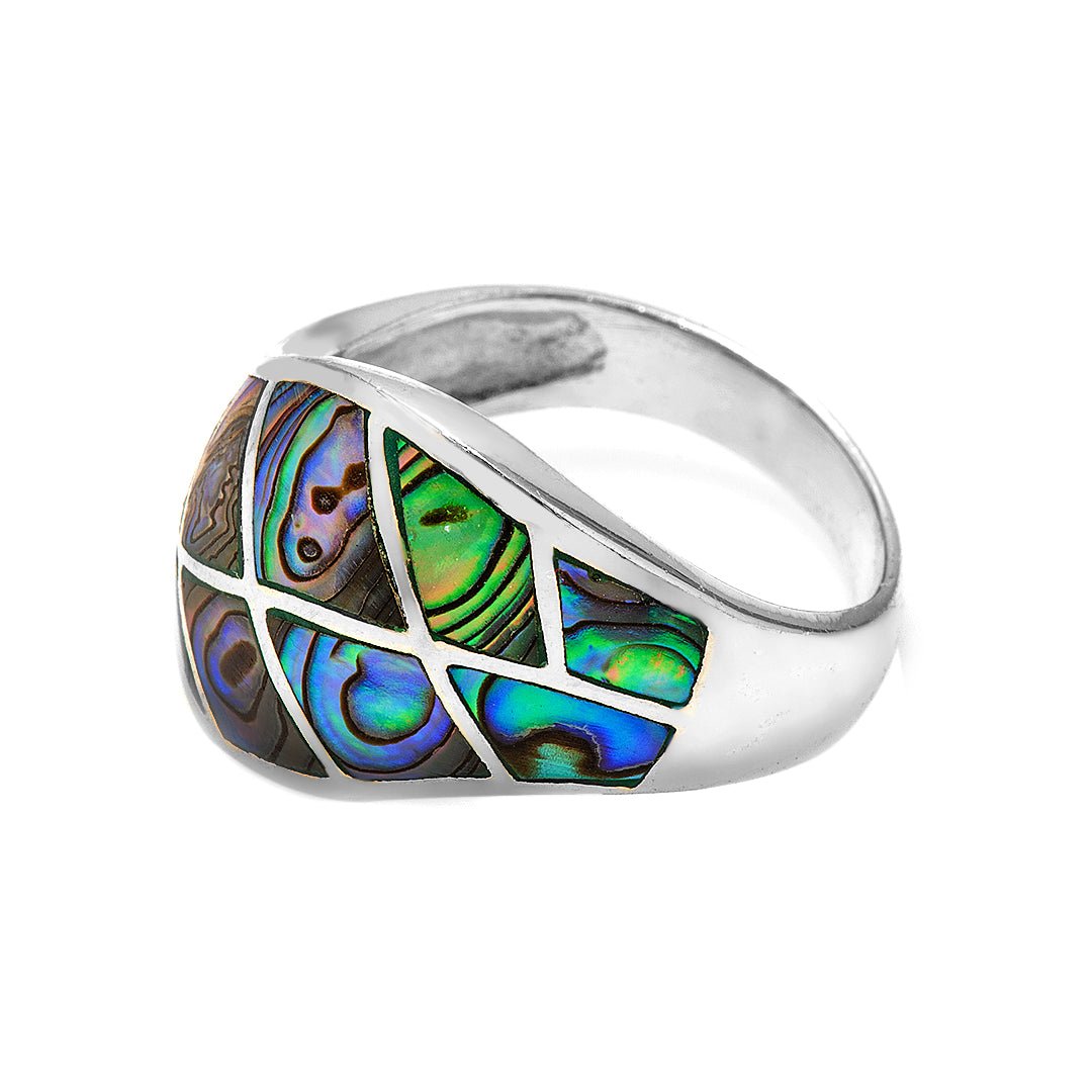 The ring emphasizes clean lines and balanced proportions. A single multi-colored stone rests in a minimalist silver bezel. Each facet of the stone highlights a different shade, adding visual interest. Additionally, the polished silver accents each hue, creating a harmonious union. This design simplicity ensures versatility for any look.