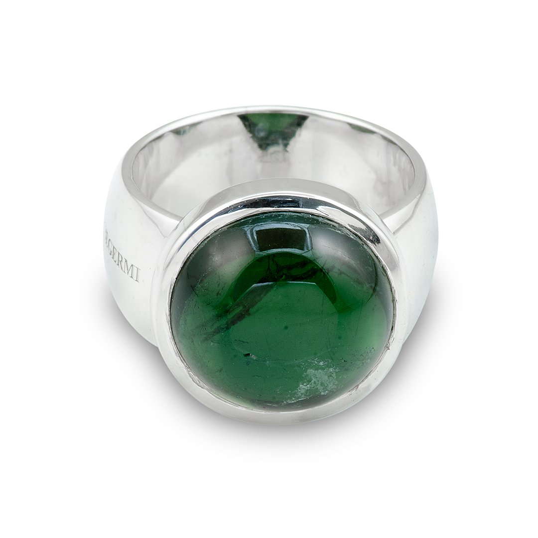 The 11.27‑carat tourmaline is both vibrant and rich in tone. As light passes through it, the stone reveals layers of depth and movement. Each turn of the hand brings new life to the color. The high-polish silver around it creates contrast and reflection, amplifying the gem’s natural glow. Subtle inclusions add authenticity, giving the stone a unique story. It’s a gemstone that draws the eye and keeps it.