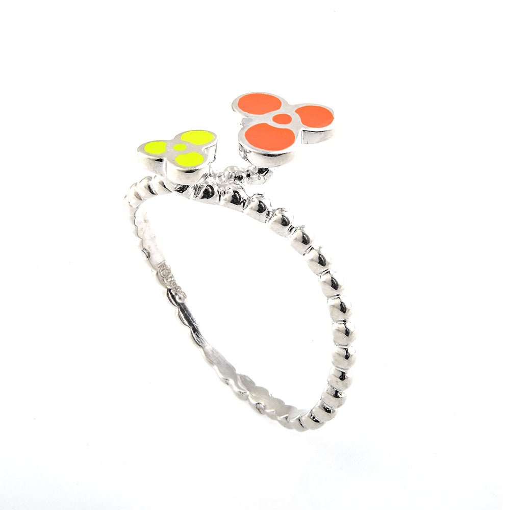 This orange floral silver ring brings a cheerful pop of color to your jewelry collection. Crafted from 925 sterling silver, it features a delicate band with vibrant orange and yellow flower accents. Despite its small size, the design is bright, expressive, and filled with charm. It feels light yet never goes unnoticed.
