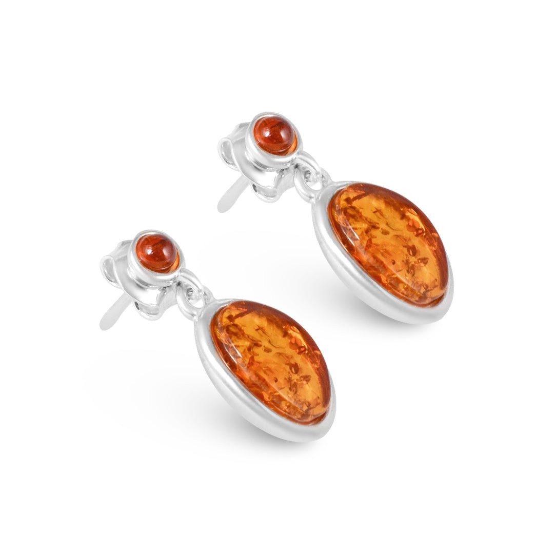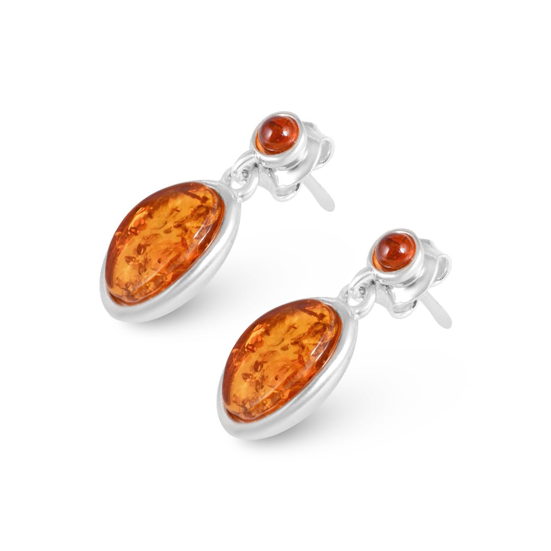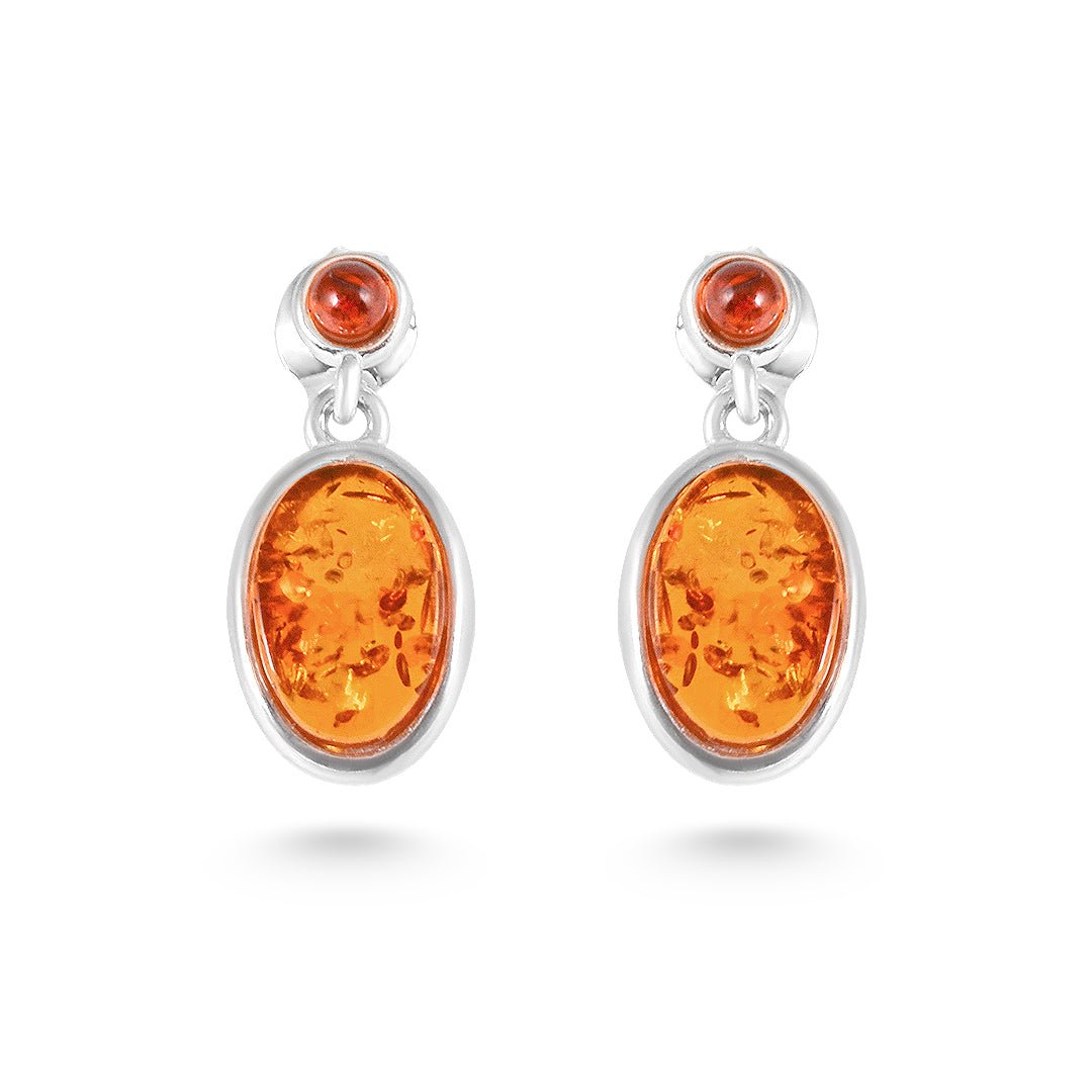The oval form gives the design balance and visual flow. The polished sterling silver setting offers contrast that enhances the natural glow of the amber. Moreover, the silver frames are kept minimal to let the stone take center stage. The rich orange color of the amber brings a sense of warmth, energy, and timeless charm. These earrings easily elevate a casual outfit and complement neutral or earthy tones beautifully.