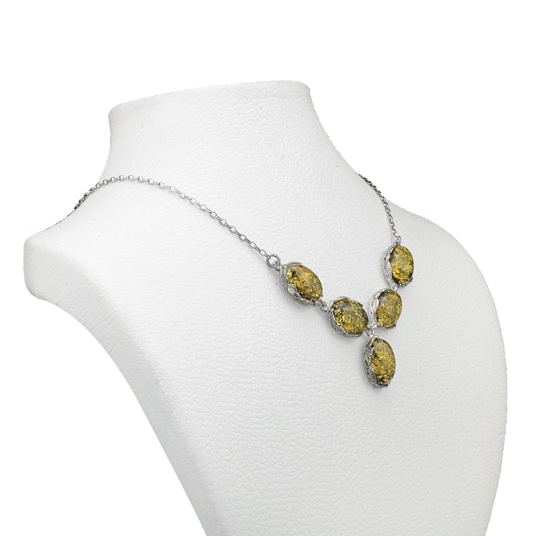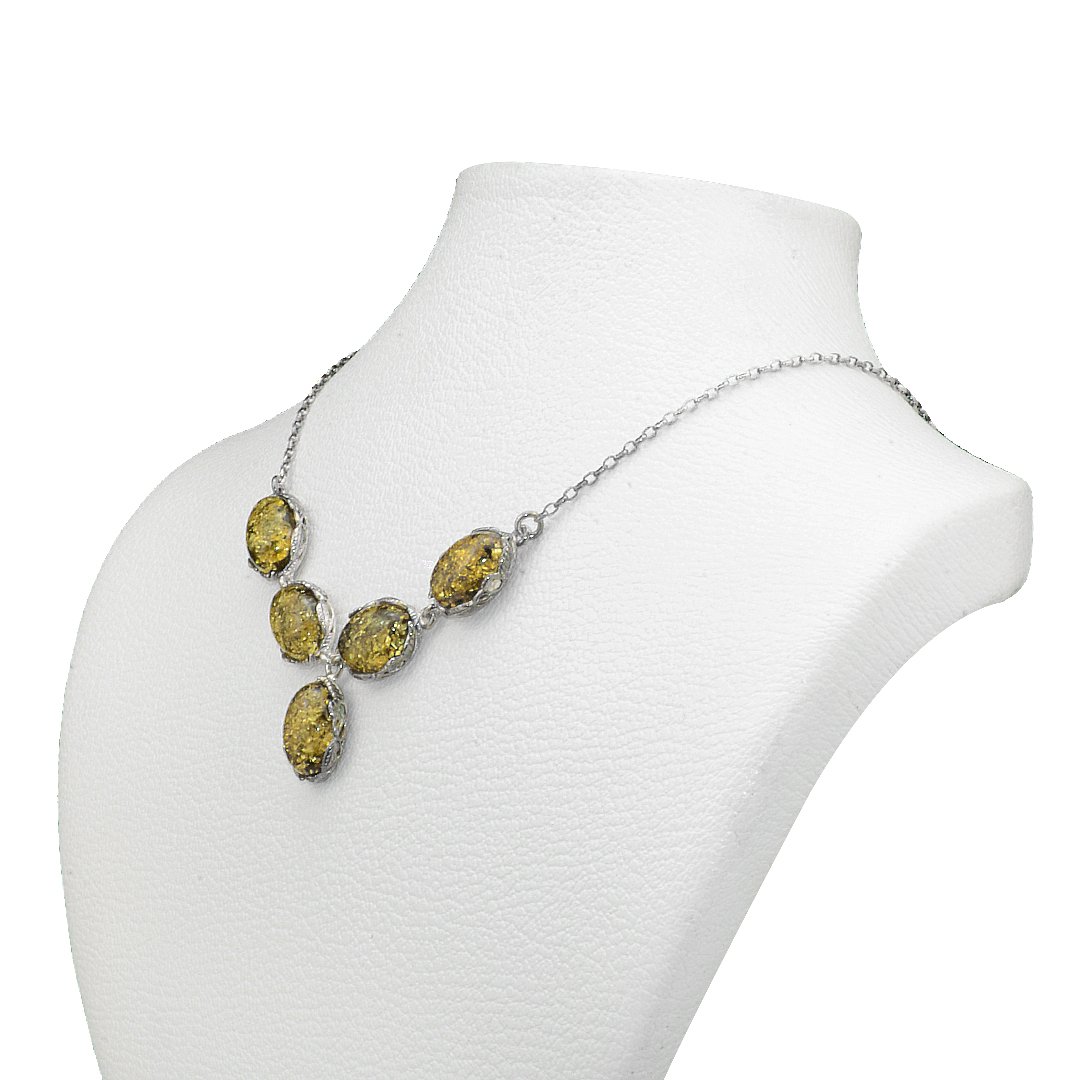 Although visually striking, the necklace remains light and wearable. At just over 10 grams, it rests naturally around the collarbone. Furthermore, the 925 silver ensures long-lasting brilliance and minimal upkeep. The structure follows the neckline gently, adding fluid movement. Additionally, the craftsmanship guarantees secure placement of every stone. Whether worn alone or layered, this oval yellow and green stone silver necklace always draws admiration without overpowering.