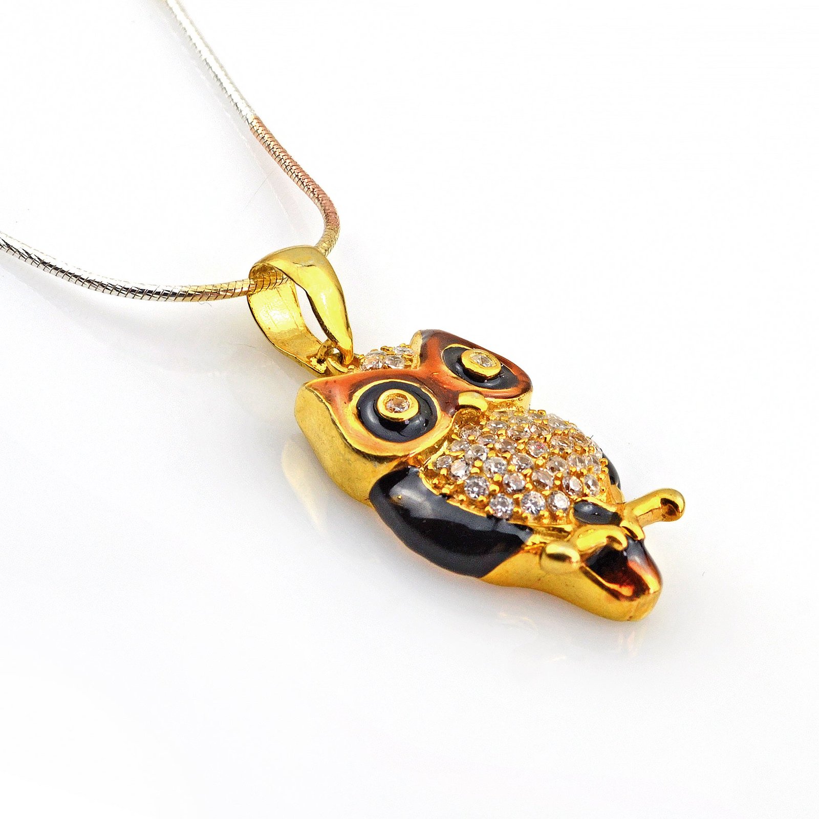 The pendant’s sculpted surface showcases layers of feathers with precision. Then, the gold tone adds contrast against the gleaming silver. Furthermore, the polished finish ensures each knob and groove stands out. Therefore, the design appears lively, drawing curious glances wherever you go. In addition, the owl’s wide eyes and curved beak lend character. Thus, the piece feels like a miniature work of art. It balances playful imagery with timeless craftsmanship.