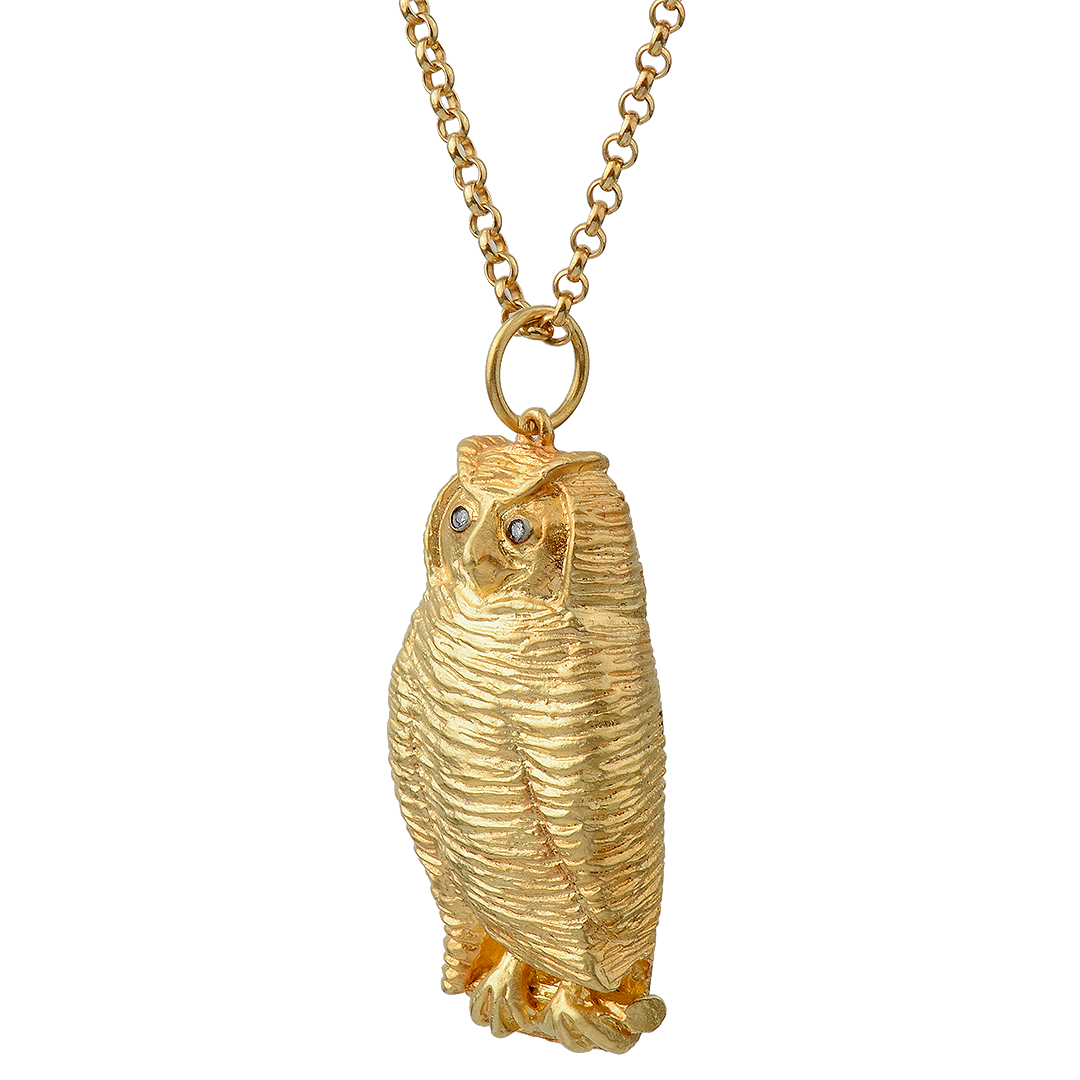 The two round brilliant diamonds achieve a total weight of 0.01 carats. Each stone is graded VS2 for clarity and H for color, offering gentle brilliance. They are set within polished gold bezels that punctuate the silver pendant. Moreover, the placement evokes soft fireflies glimmering in twilight skies. Additionally, the diamonds accentuate the owl’s eyes, creating a lively focal point. Their discreet sparkle enhances the design’s narrative without overwhelming its form. Consequently, these diamonds transform an abstract motif into a luminous symbol of insight.