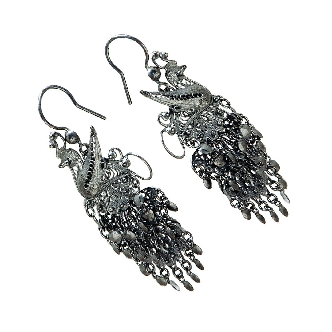 These peacock silver earrings celebrate the soft curves and striking form of peacock feathers. Crafted from 925 sterling silver, the design flows gently with sculpted lines. Each earring moves with light and grace, offering a look that is both detailed and wearable.