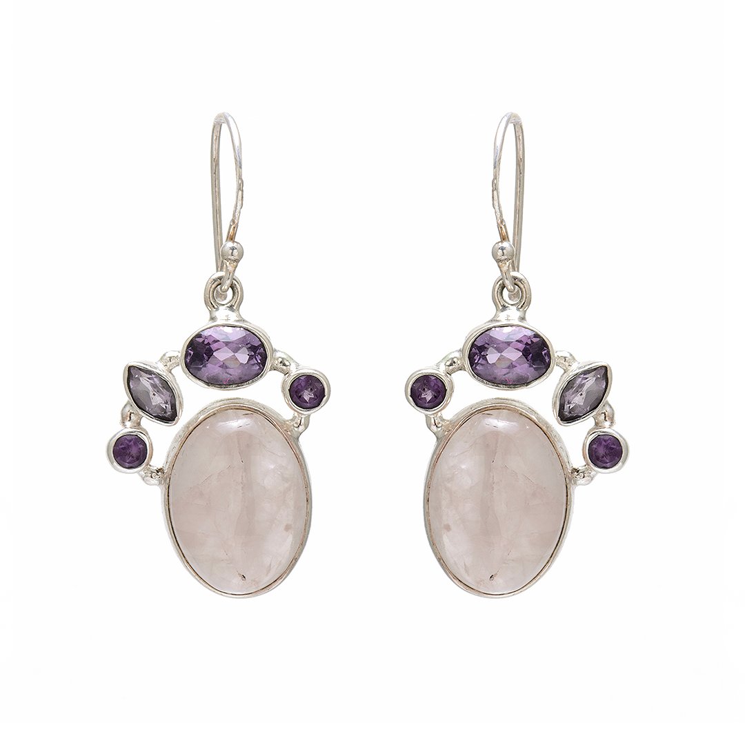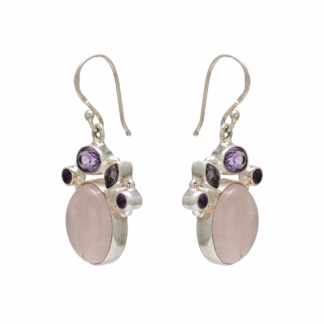 Each stone is selected for clarity, color, and size. The pink and purple hues create contrast yet feel harmonious together. Additionally, the silver setting wraps around the stones in clean curves. This design allows the stones to shine while staying protected. The polished surface adds a touch of brightness without being overpowering. Overall, the earrings feel cohesive and refined, offering a quiet statement that stands out through simplicity.