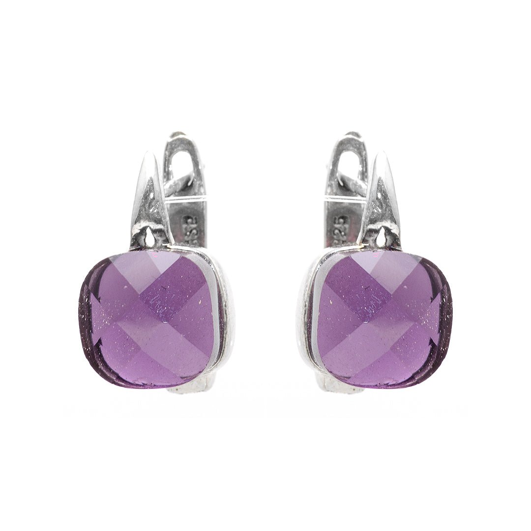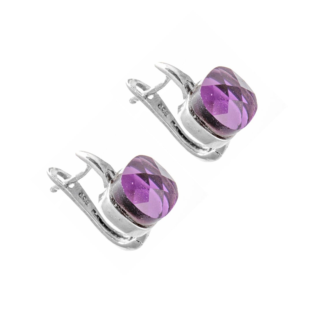These purple stone studs blend timeless geometry with vibrant color in a refined design. Made from 925 sterling silver and weighing 5.83 grams, they feature square-cut man-made purple stones set in polished silver frames. The sharp lines of the cut contrast beautifully with the soft sheen of the silver. As a result, the purple stone studs strike the perfect balance between structure and radiance. Moreover, their size and weight provide comfort without sacrificing presence.