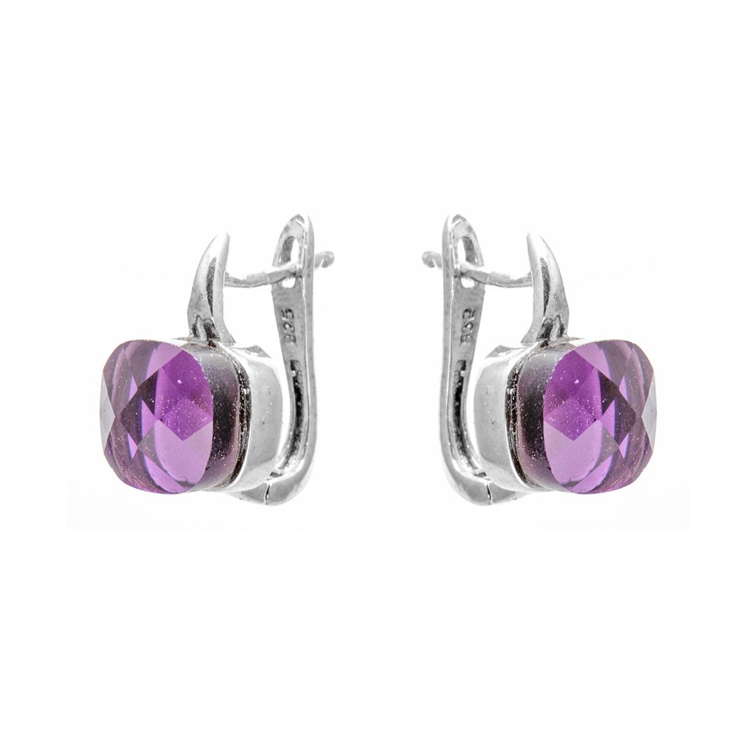 The square-cut stones are faceted to reflect light with brilliance, adding dimension and sparkle to every movement. Their rich purple tone offers a sophisticated pop of color. Furthermore, the clean silver bezel holds the stones securely and adds definition to the overall design. The result is a pair of earrings that feel bold yet refined—making the purple stone studs ideal for those who appreciate elegance with a contemporary edge.