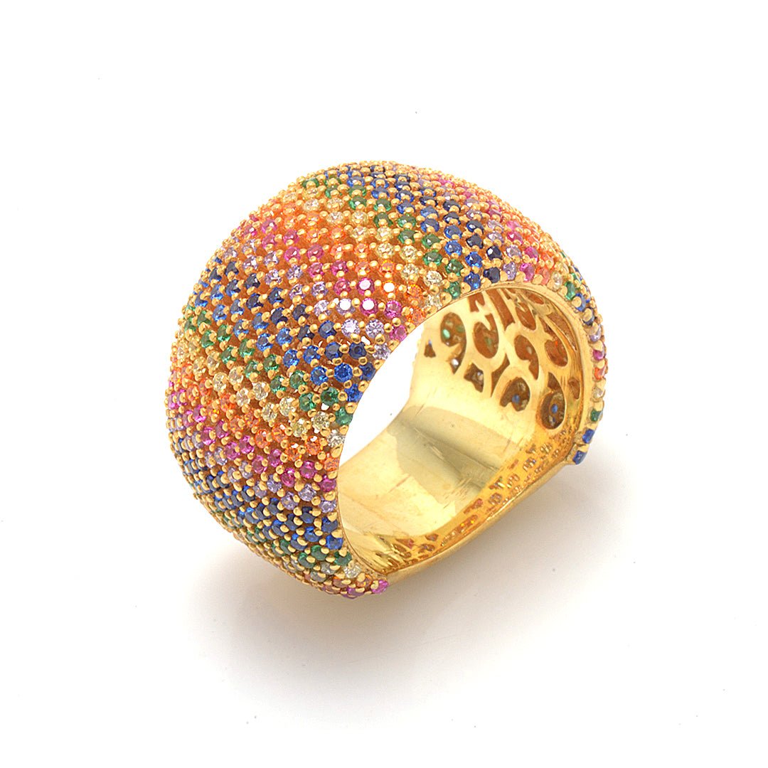Begermi by Antwerpen brings light and color to silver design. This ring reflects that mission—blending structural polish with sparkling movement. With its gold finish and vibrant crystal tones, this piece is a celebration of style, creativity, and everyday glamour.