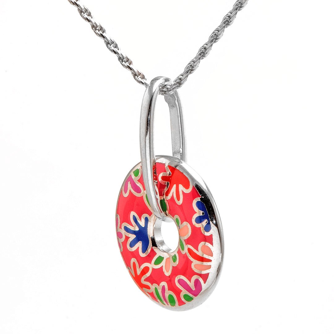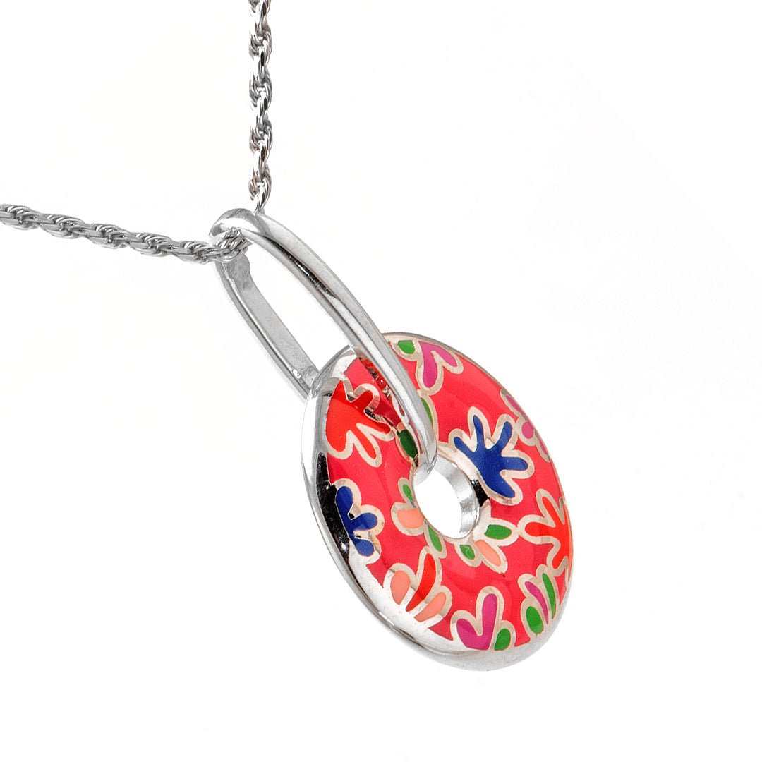 The Red Enamel Donut Silver Pendant is a spirited take on modern silver design. Its striking red enamel draws the eye instantly. Set into a rounded donut shape, the vibrant surface contrasts beautifully with polished silver edges. The shape is playful, while the color feels confident and expressive. This pendant doesn’t just accessorize—it brings energy to every look.