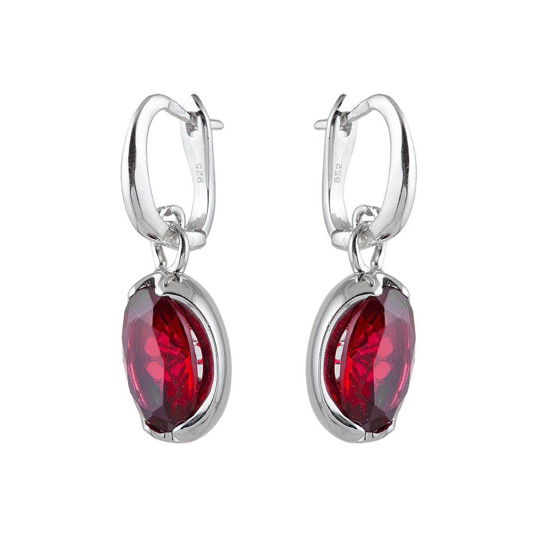 The man-made red stones display a vibrant hue that adds passion and depth to the design. Carefully faceted, they shimmer with every movement. Furthermore, the silver setting complements the bold color with a clean, polished outline. This balance ensures that the earrings are eye-catching without being overwhelming. Therefore, the red stone earrings become a versatile addition to any jewelry collection, pairing well with both neutral tones and rich palettes.