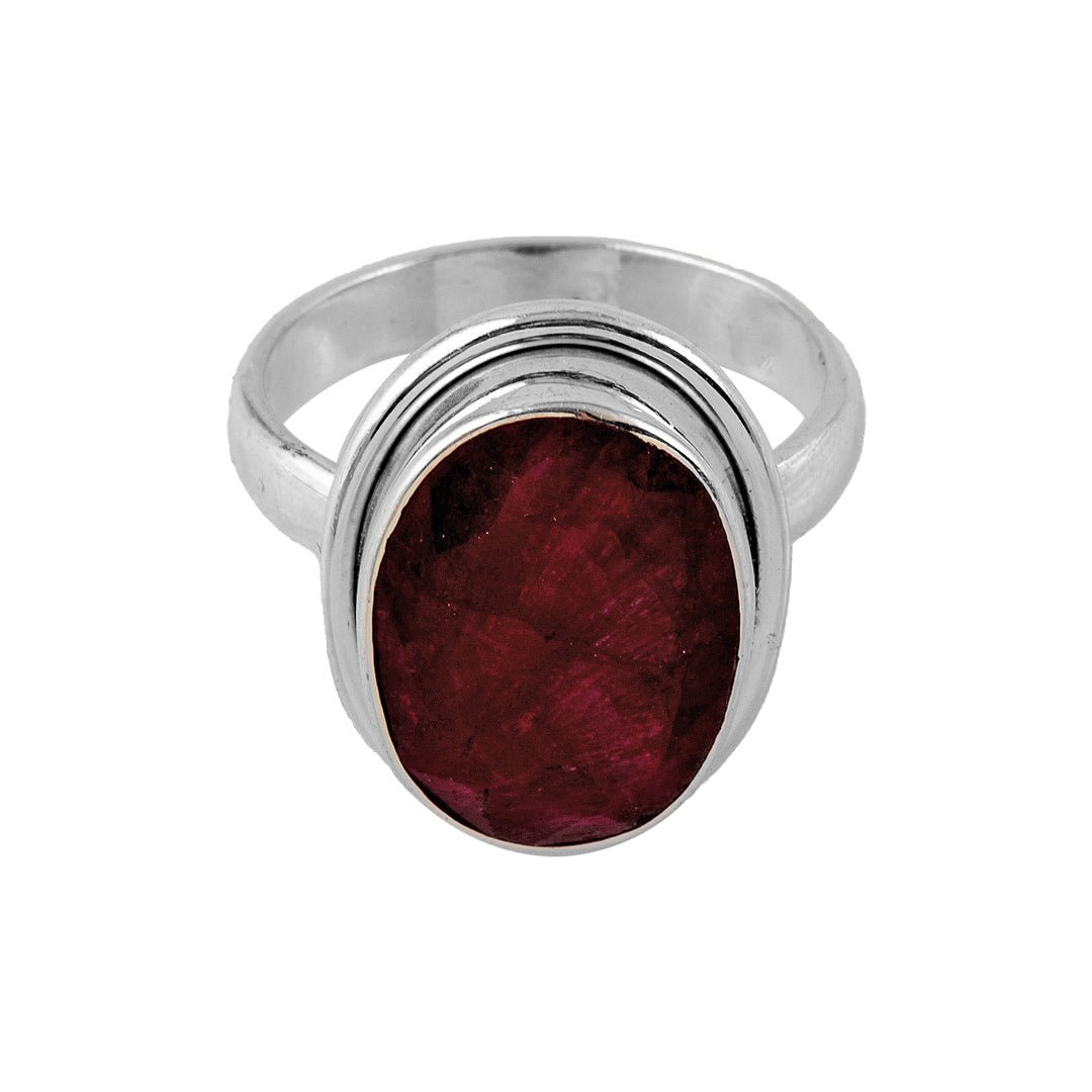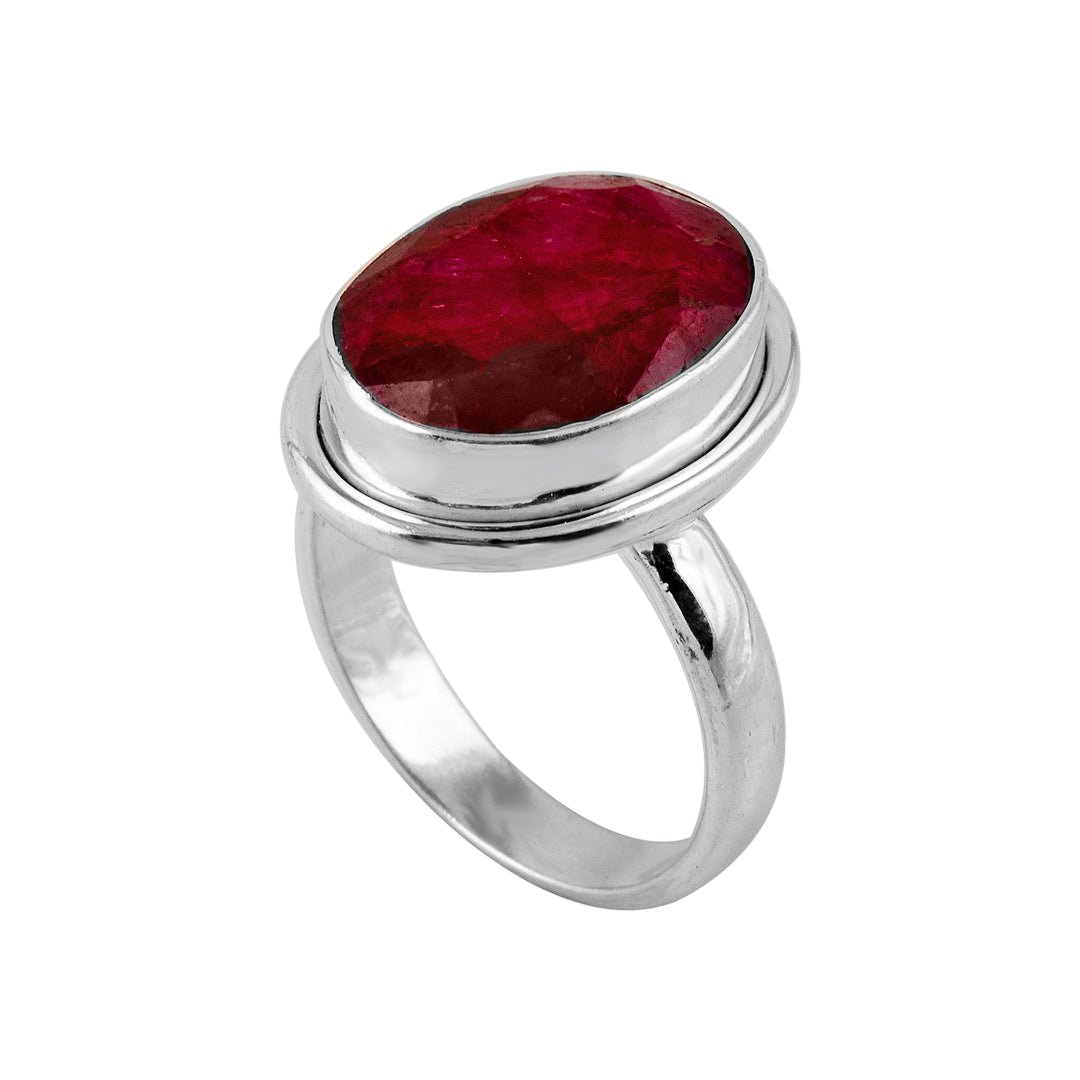 The ring emphasizes clean lines and balanced proportions. The bezel setting secures the red stone gently yet firmly. Furthermore, the smooth silver surface reflects ambient light to highlight the gem’s hue. The interior is finely brushed for comfort during prolonged wear. As a result, the piece feels as good to wear as it looks. Moreover, the minimal metal approach ensures the stone remains the star of the design.