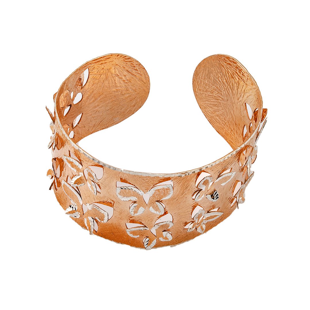 This rose gold butterfly silver bracelet evokes softness, elegance, and fluid movement. Crafted from 925 sterling silver, its surface is bathed in a refined rose gold tone that flatters every skin tone. Along the bracelet’s curve, delicate butterfly motifs take flight, each one sculpted with refined detail. Together, they form a graceful, airy design that wraps the wrist in poetic motion. Lightweight yet substantial, the piece offers a perfect blend of beauty and lasting quality.