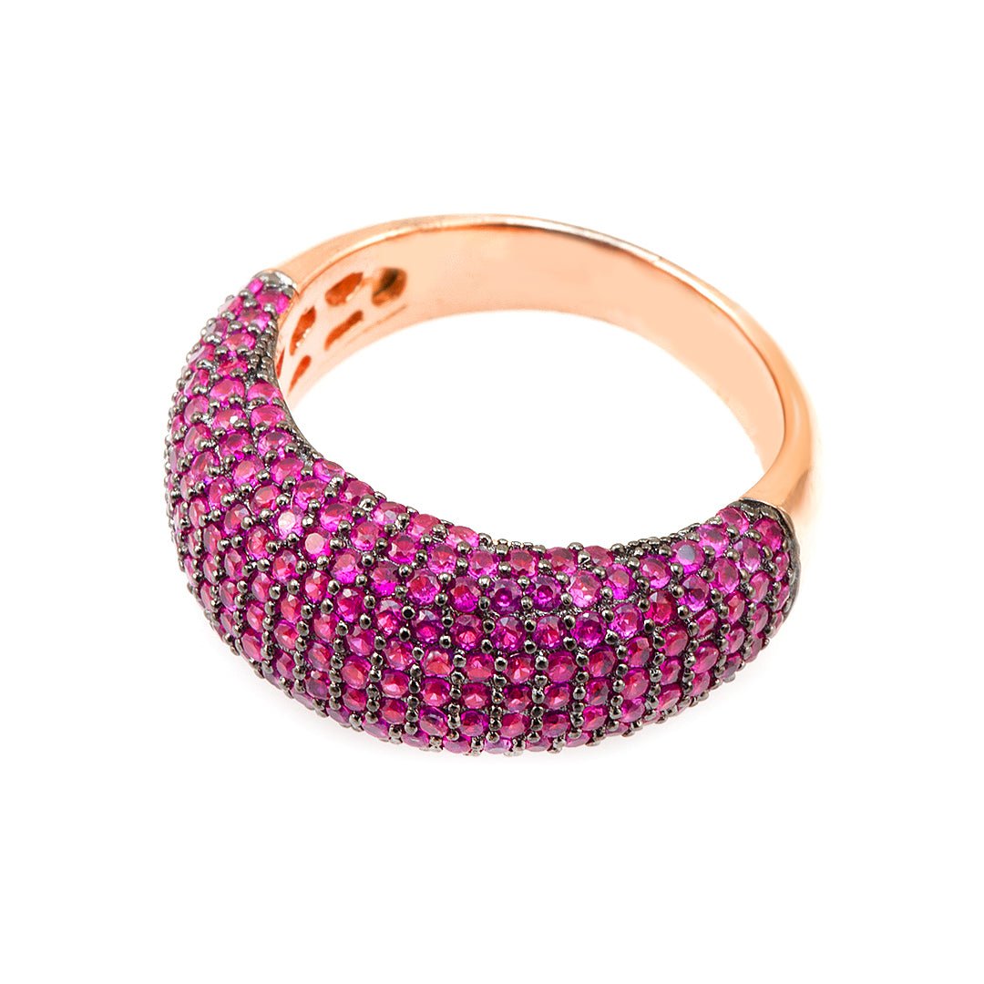The pink crystals are set evenly across the upper arc of the ring. Their soft sparkle contrasts beautifully with the warm rose gold finish. Together, they create a refined balance of color and light. The crystals are small but bright, adding a graceful energy without overwhelming the design.