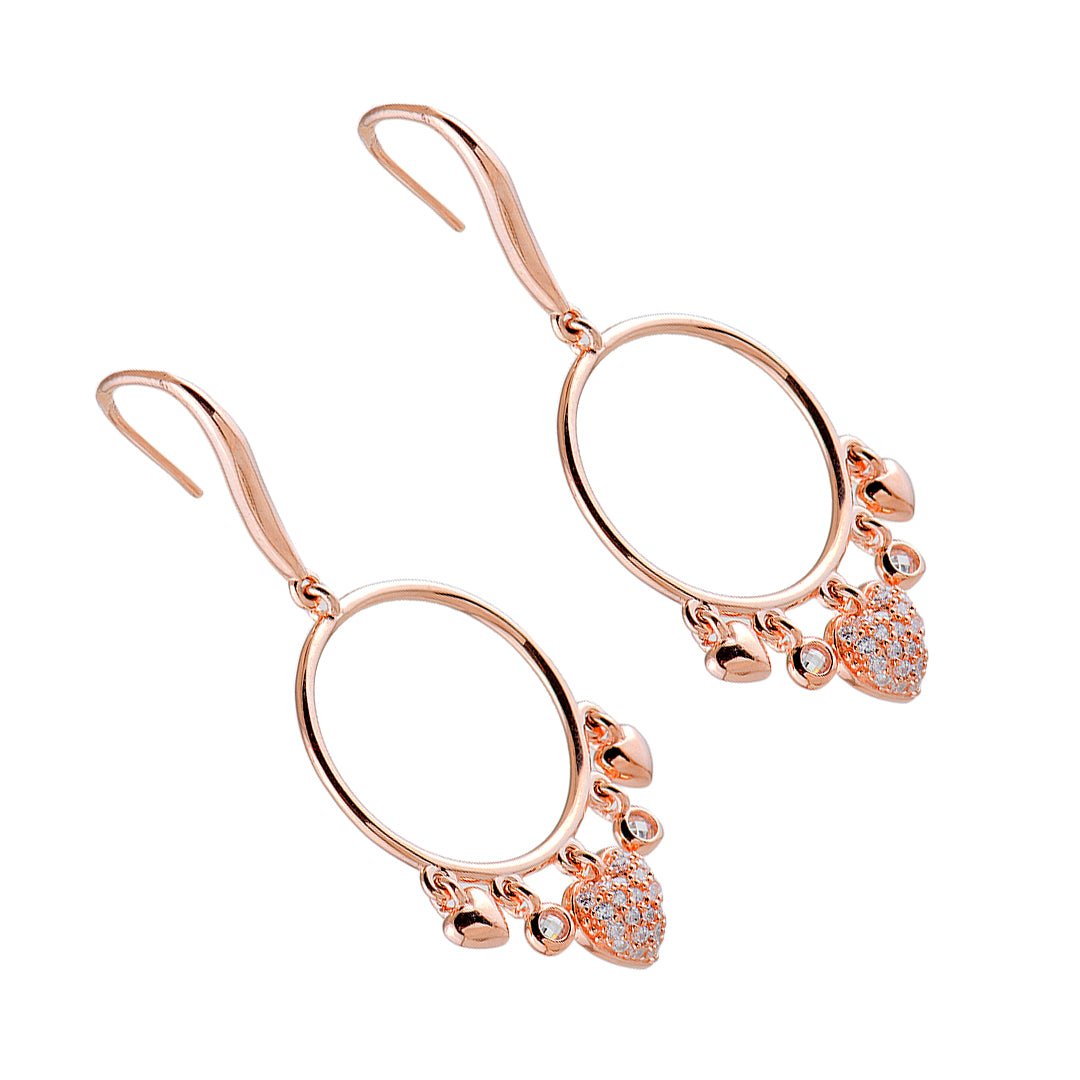These rose gold silver earrings with crystals offer a graceful mix of light and luxury. Crafted in 925 sterling silver, they glow in a warm rose gold tone. Meanwhile, faceted crystals align along each curve for balanced sparkle. Furthermore, their polished finish enhances every glimmer. Consequently, these earrings feel both modern and timeless. Moreover, they flatter all skin tones. Additionally, their gentle weight makes them easy to wear daily without fatigue.