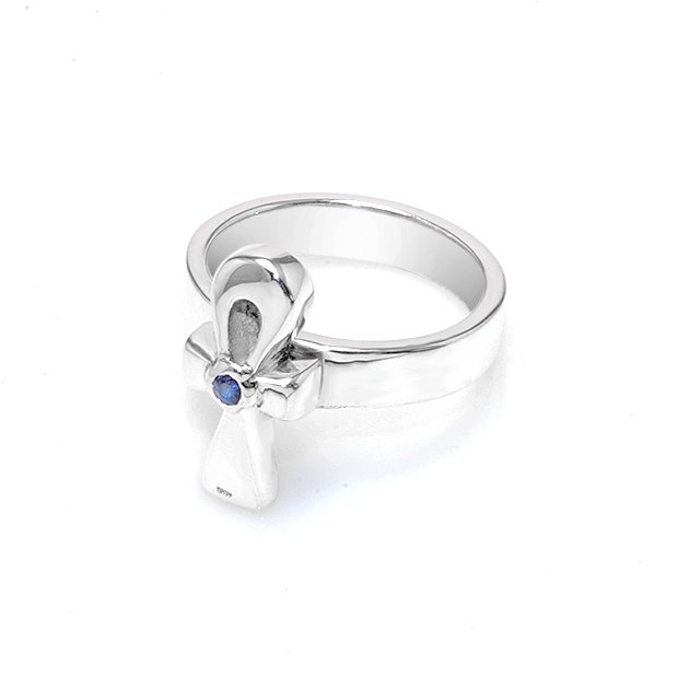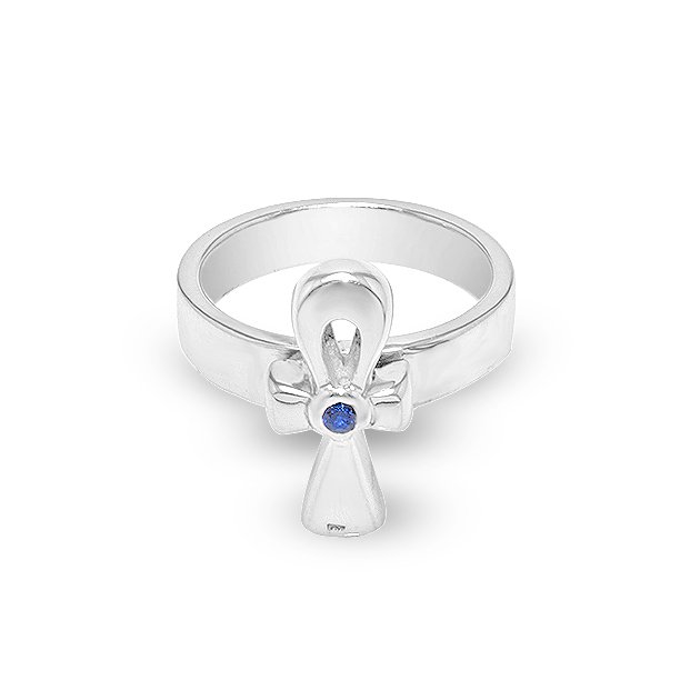 The ring pairs seamlessly with other silver jewelry or can stand alone as a statement piece. The Key of Life motif with sapphire accent delivers a subtle but striking effect. It complements casual and formal outfits alike. Therefore, styling is flexible and intuitive. The piece transitions easily from daytime to evening wear, combining symbolism and aesthetic appeal.