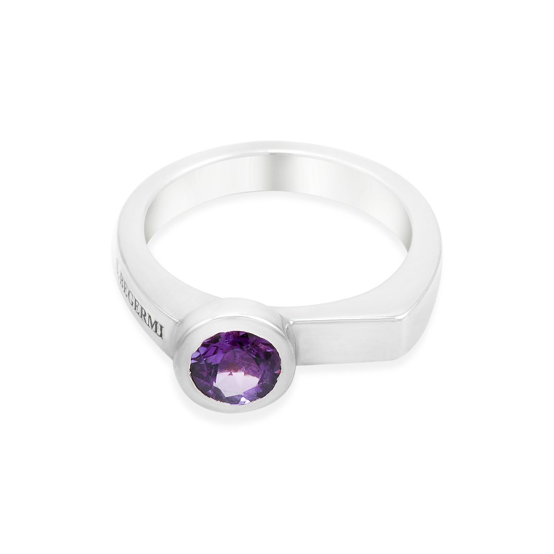 The Silver Amethyst S.Begermi Ring showcases a natural amethyst set in polished 925 sterling silver. The gemstone reveals a calm violet tone that reflects clarity and softness. Its color brings visual harmony while remaining understated. Meanwhile, the silver setting enhances brightness and balance. The result feels elegant and intentional.