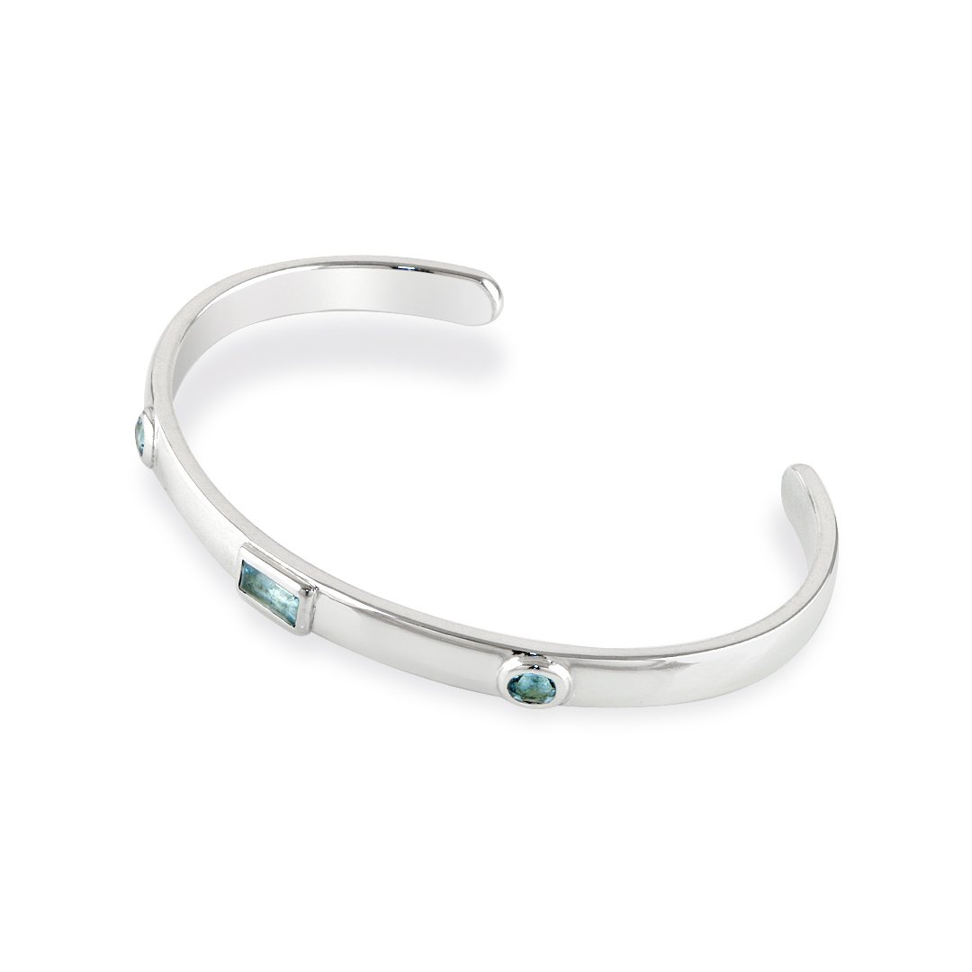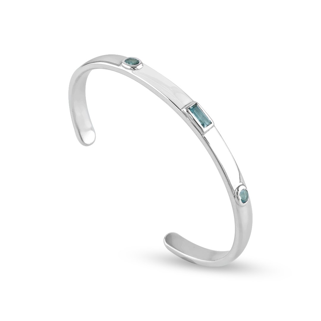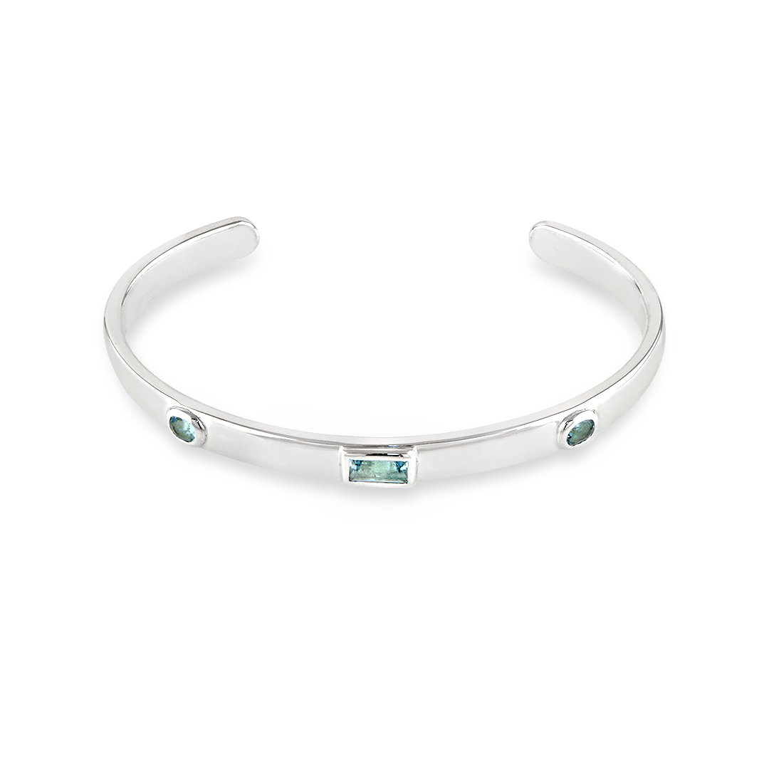 This Silver and Aquamarine Bracelet represents timeless design and natural purity. Its tranquil hue and lustrous silver express understated luxury. The combination of aquamarine and sterling silver reflects clarity and calmness. Designed for those who value graceful simplicity, it showcases modern jewelry mastery. The bracelet’s minimalist structure pairs effortlessly with other pieces. It stands as a refined emblem of enduring style. Each wear renews its serene brilliance, blending art and craftsmanship seamlessly.