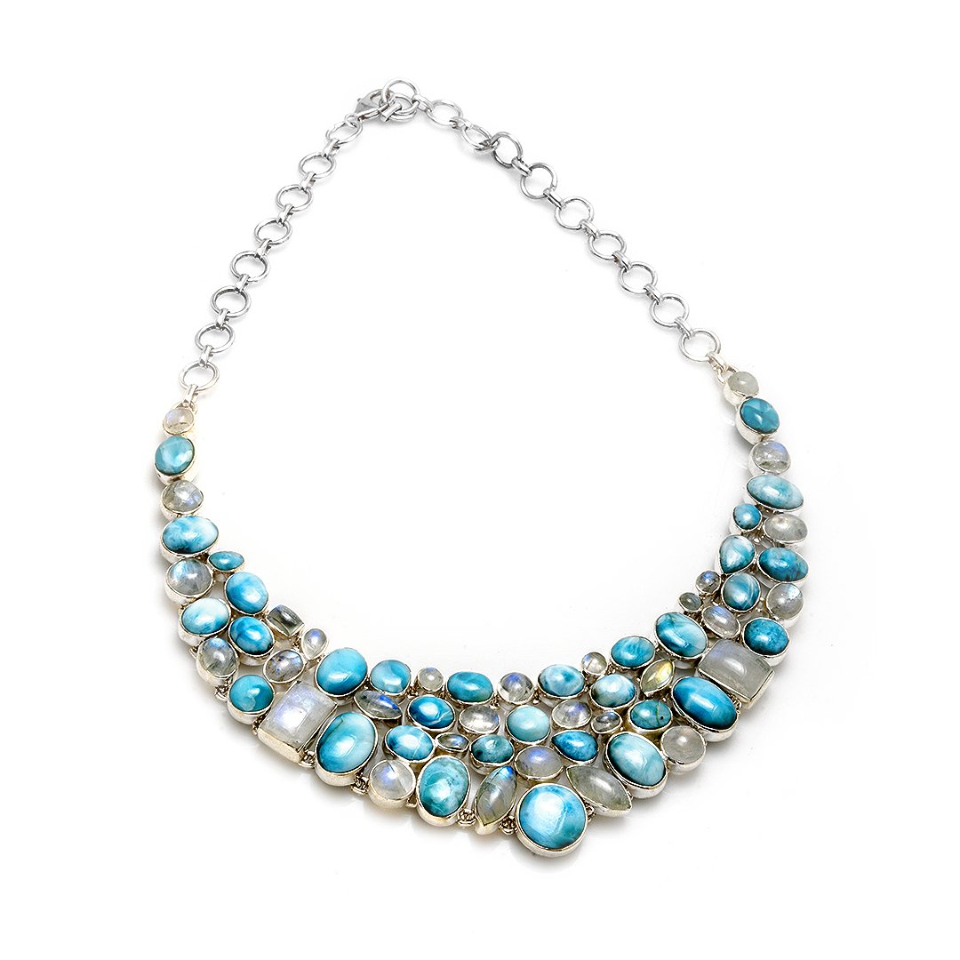 Although bold, the necklace adapts beautifully to many outfits. Wear it over a plain dress for an instant upgrade or style it with minimalist tops for modern contrast. Its balanced structure and ethereal stone make it easy to wear often—and with everything.