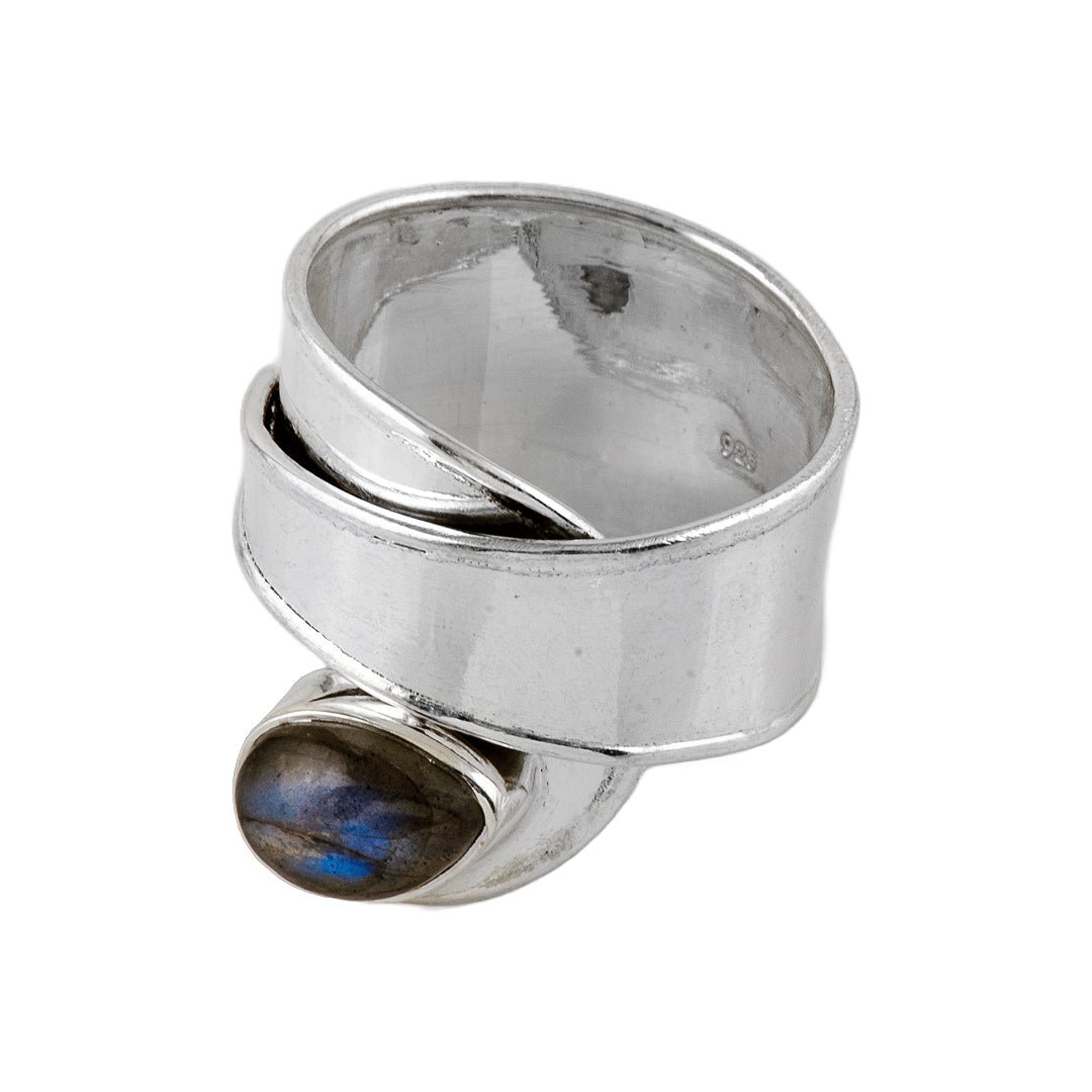 This silver and labradorite ring merges earthy mystique with contemporary design. The labradorite’s shifting blue-grey iridescence draws the eye, offering a play of light that makes each glance feel new. Set in gleaming 925 sterling silver, it becomes a wearable work of art.